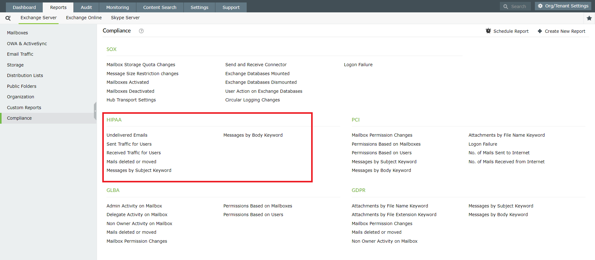 Figure 1: View the compliance reports of Exchange Reporter Plus.