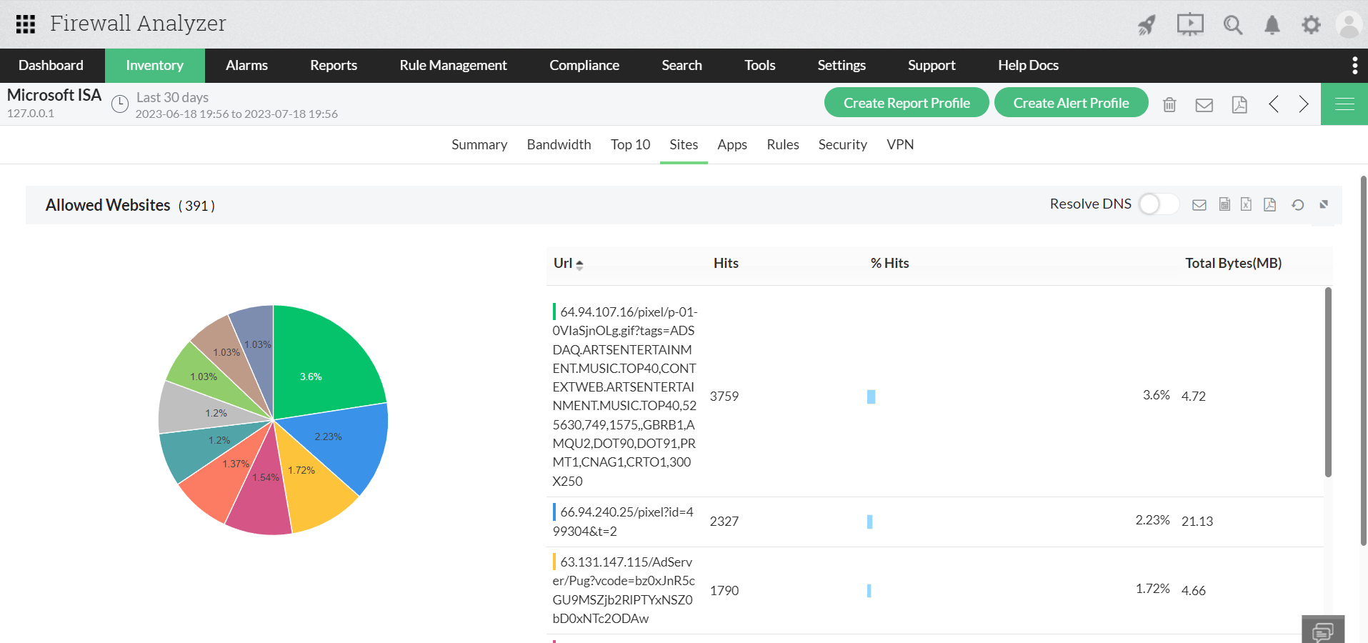 By analyzing Microsoft ISA log files, Firewall Analyzer generates exclusive reports that provide detailed insights into your network activity, security statistics, in addition to recommendations on how to configure your firewall to improve its performance and security.