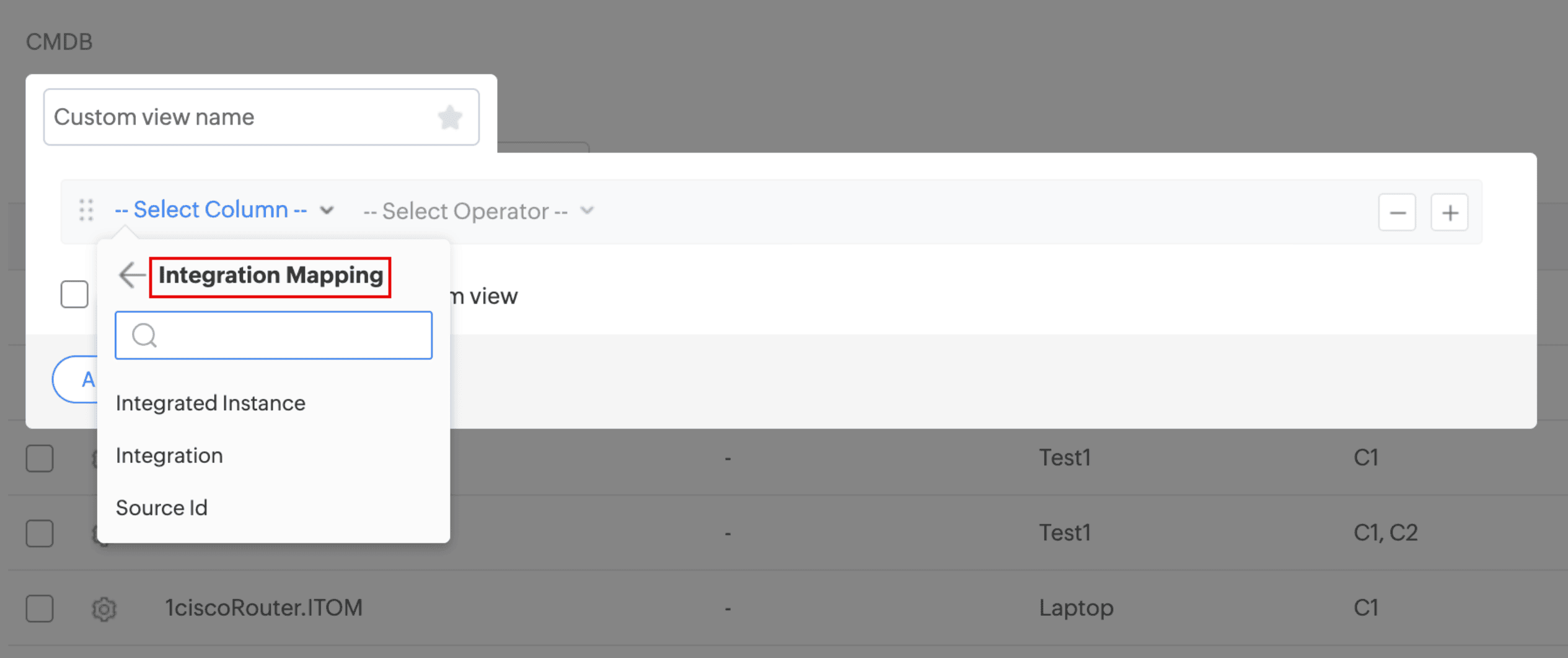 An illustration of Integration Mapping in custom list view criteria