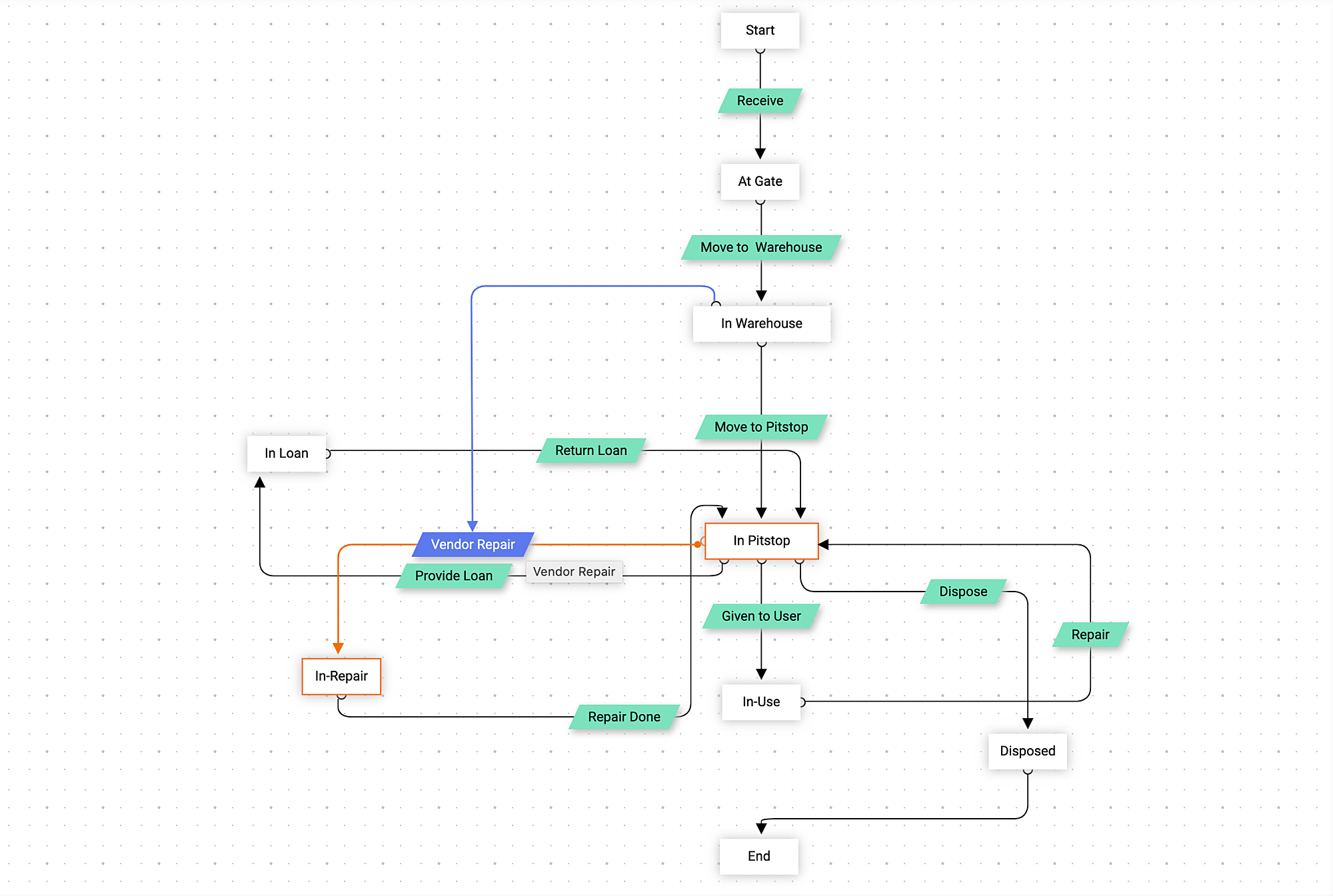 Adhere to your organization's standard operating workflows for assets by guiding IT technicians through the different states of the predefined asset life cycle.