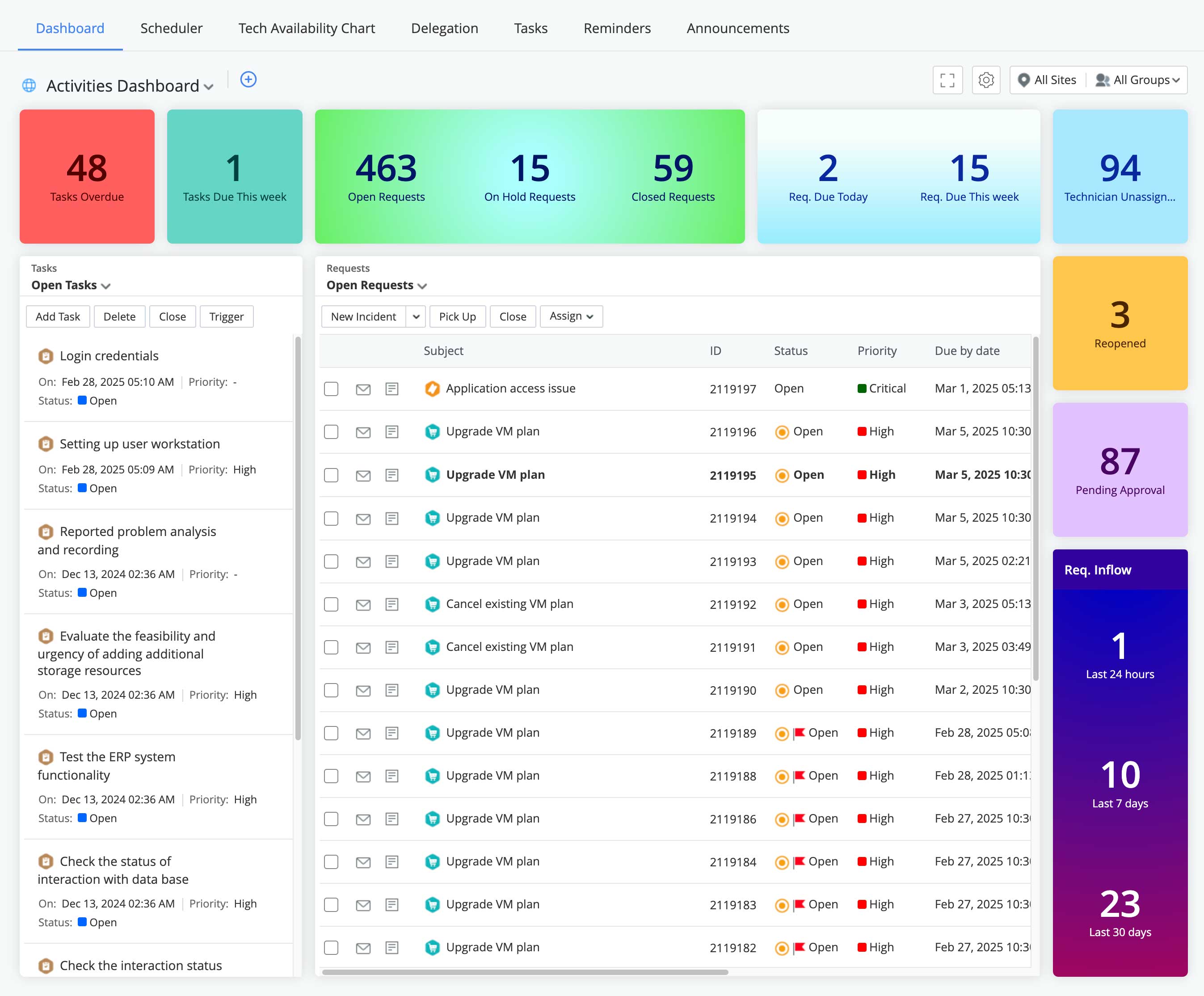Visualize critical data and metrics using diverse graph types, including bar charts, pie charts, line graphs, pyramid charts, and summaries, delivering flexibility in representation. The summary graph type elevates key ITSM metrics—such as open incidents, request inflow, and overdue tasks—by presenting them in customizable card formats for enhanced clarity and streamlined monitoring.