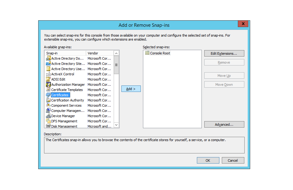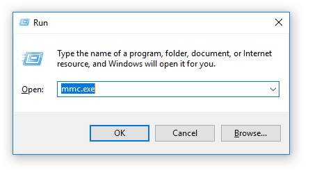 - Execute mmc.exe from the run command to open 'Certificates' store