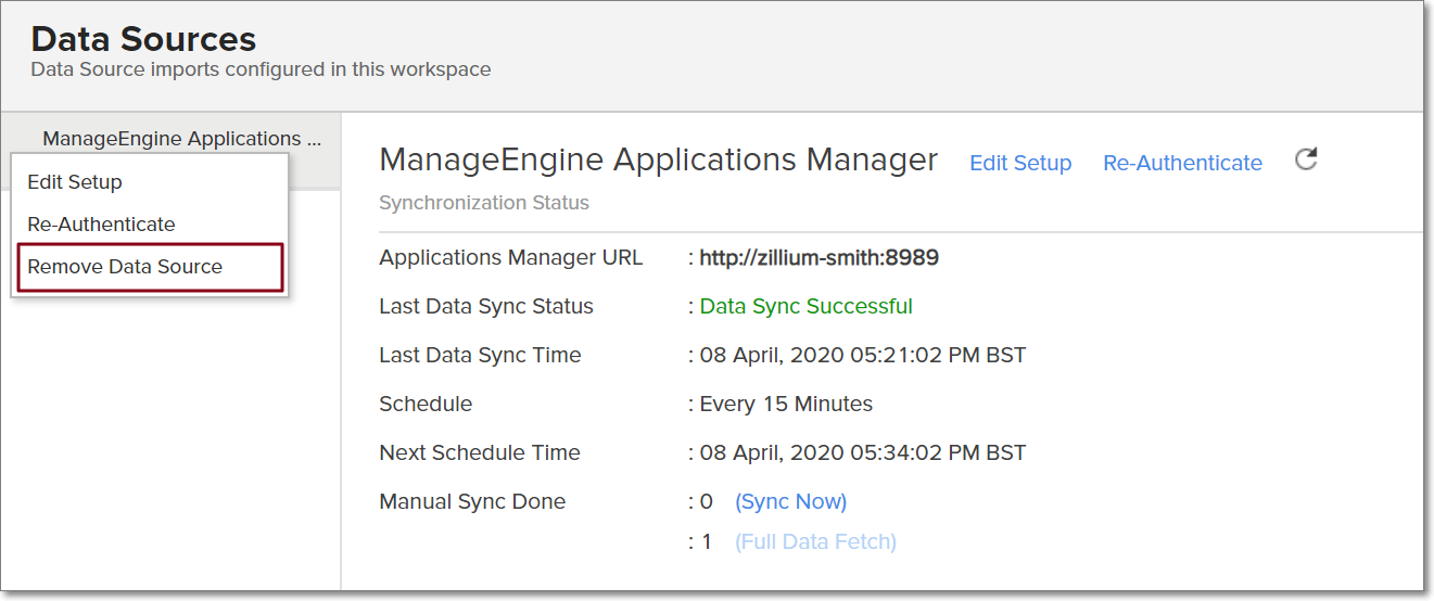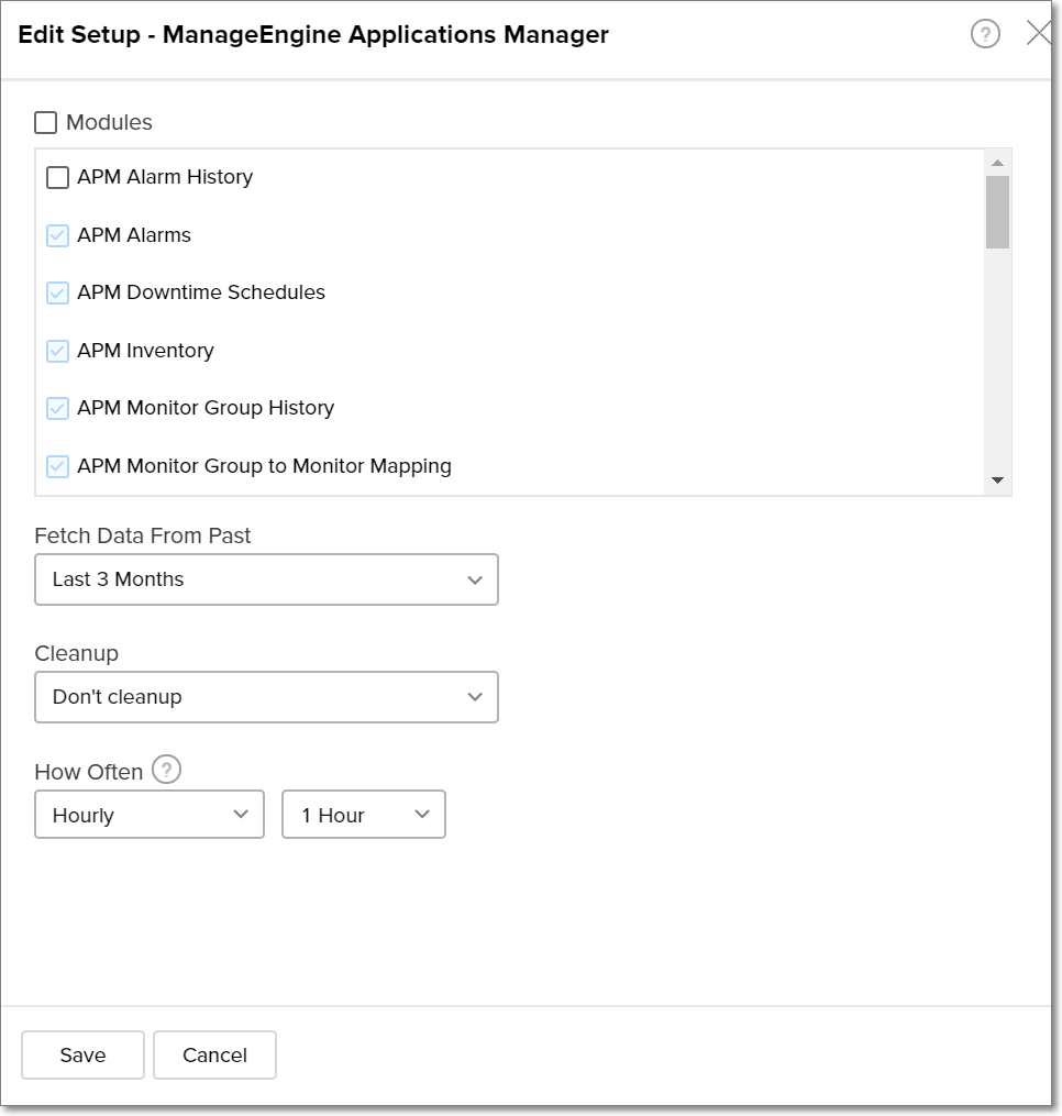 | APM Downtime Scheduler | Data from Applications Manager is fetched during every synchronization. Click here to know more. |