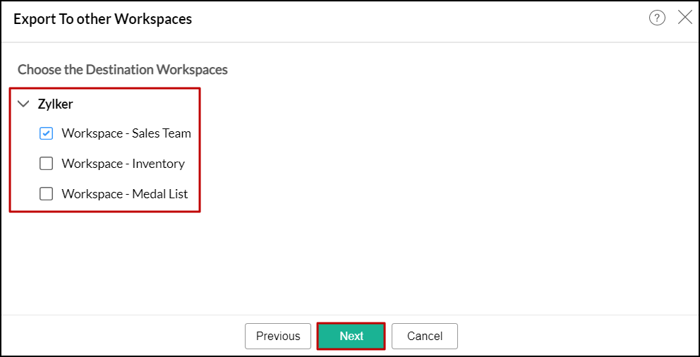 Yes. Analytics Plus allows you to export multiple views from one workspace into another. During the export process, you can choose the required workspaces from the Choose the Destination Workspaces page.
