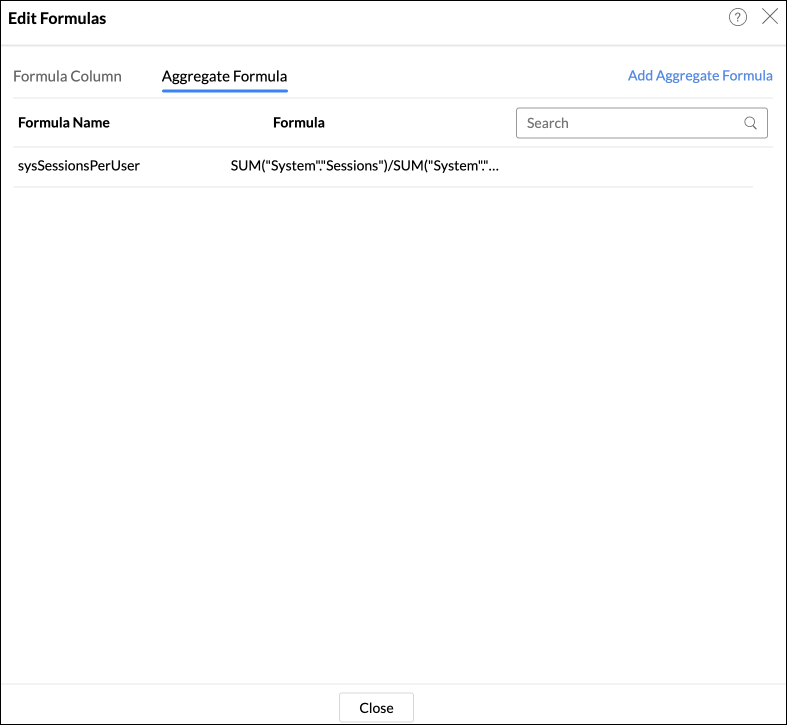 Formulas are calculations that can be defined using the powerful formula engine to create required reports. Refer this documentation to know more. There are also several default formulas created based on the Google Analytics 4 (GA4) modules. To view the default formulas, open the required table, click Add and select the Edit Formulas option.