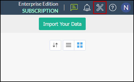 Analytics Plus allows you to edit the settings only if you are the Account Administrator of that organization. Click the Settings icon at the top to edit the required organization settings.