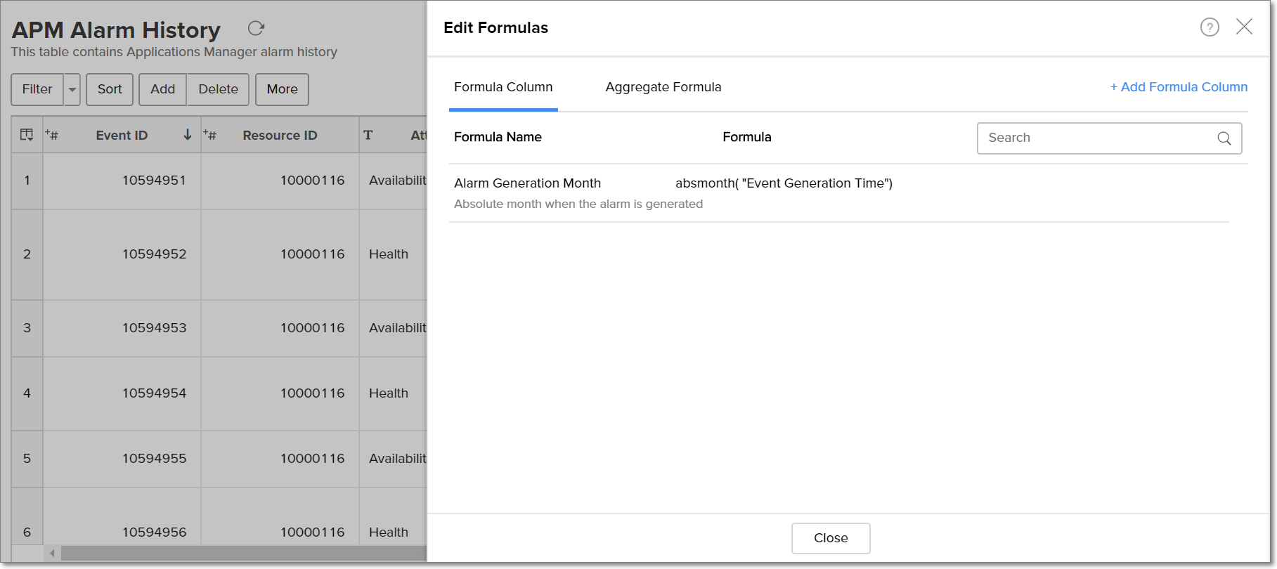 Formulas are calculations that can be defined using the powerful formula engine in Analytics Plus, to create required reports. Refer this documentation to know more. There are also several default formulas created based on the OpManager modules. To view the default formulas, open the required table, click Add and select the Edit Formulas option.