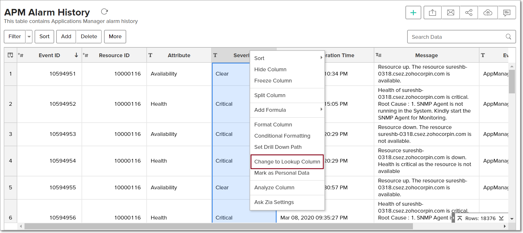 • Open the corresponding table, right click the column header and select the Change to Lookup Column option.