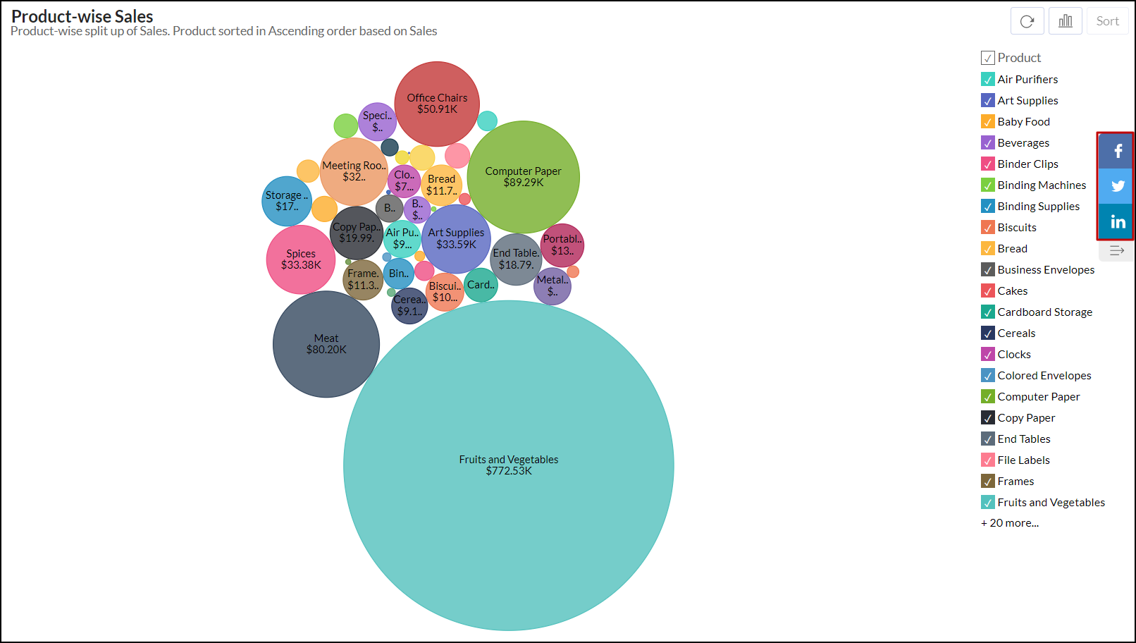 • You will be able to see the Facebook, Twitter, and Linked icons at the right side of your published report.