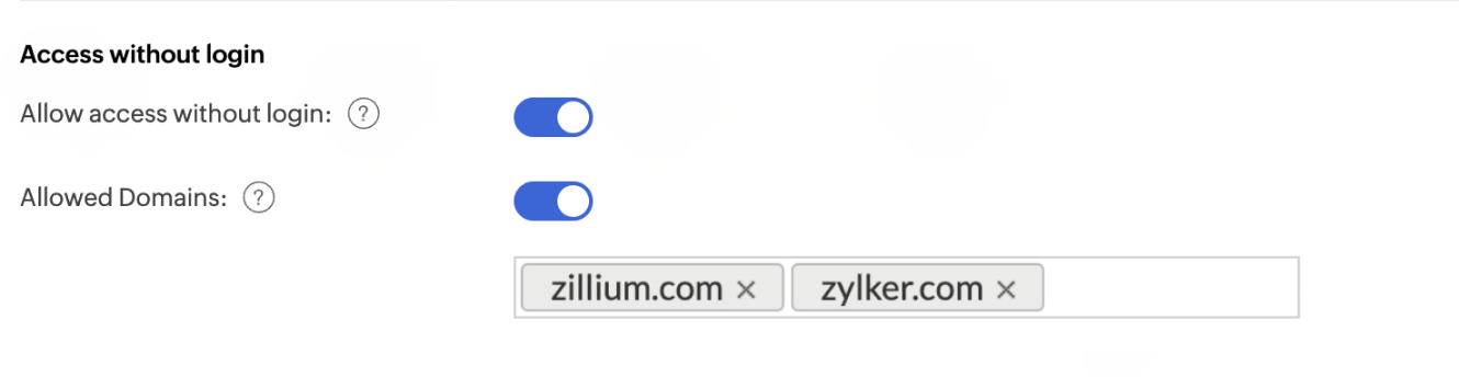 • Allowed domains option allows you to restrict users only from specified trusted domains to access the public views.