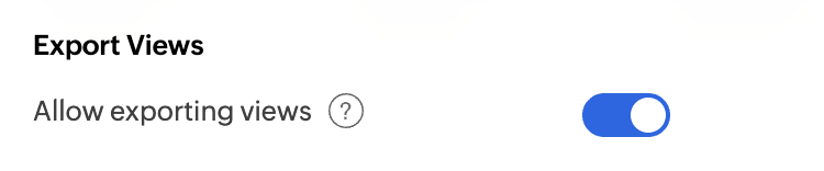 This option allows you to export the views or data available in the organization. Disabling this option will restrict the export action.