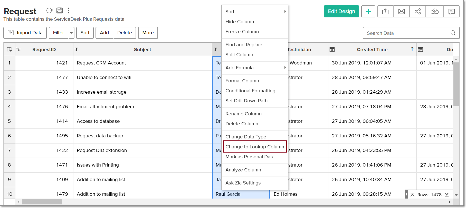 • Open the corresponding table, right click the column header and select the Change to Lookup Column option.