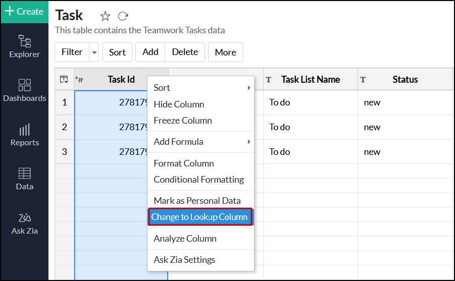 The data from Teamwork Projects is synchronized with Analytics Plus automatically, and stored in the form of various tables. Therefore, it is not possible to add data or modify the existing data present in these tables.