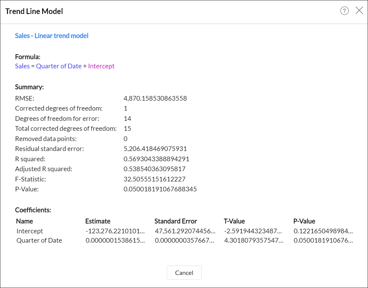 - Formula: This section displays the formula that is applied over the underlying data in the chart to drive the trend line.