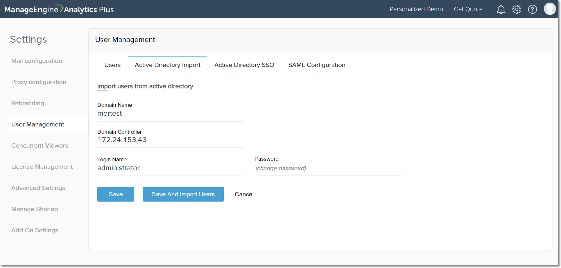 To learn more about importing Active Directory users to Analytics Plus, click here.