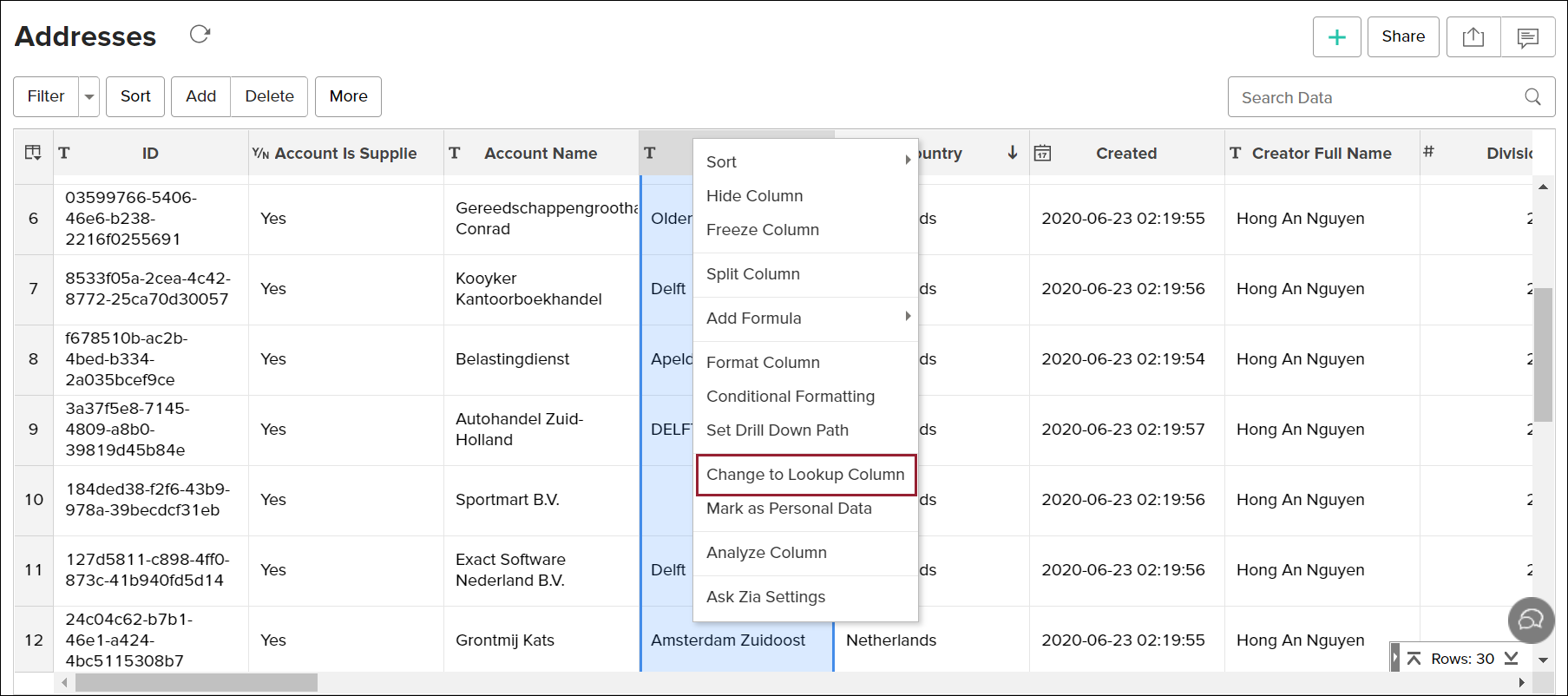 Open the corresponding table, right click the column header and select the Change to Lookup Column option.