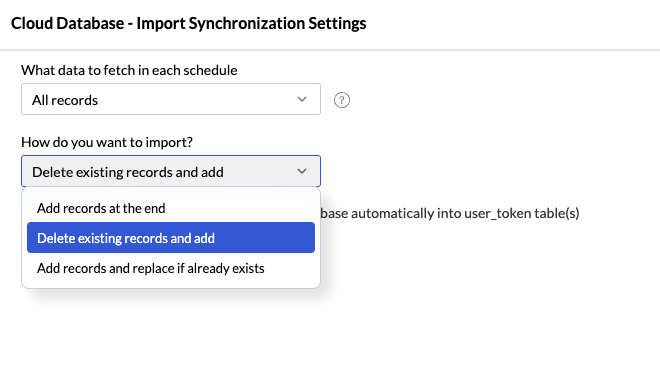 • Add Records and replace if already exists: Updates the existing records on the table and appends the new records at the end of the table.