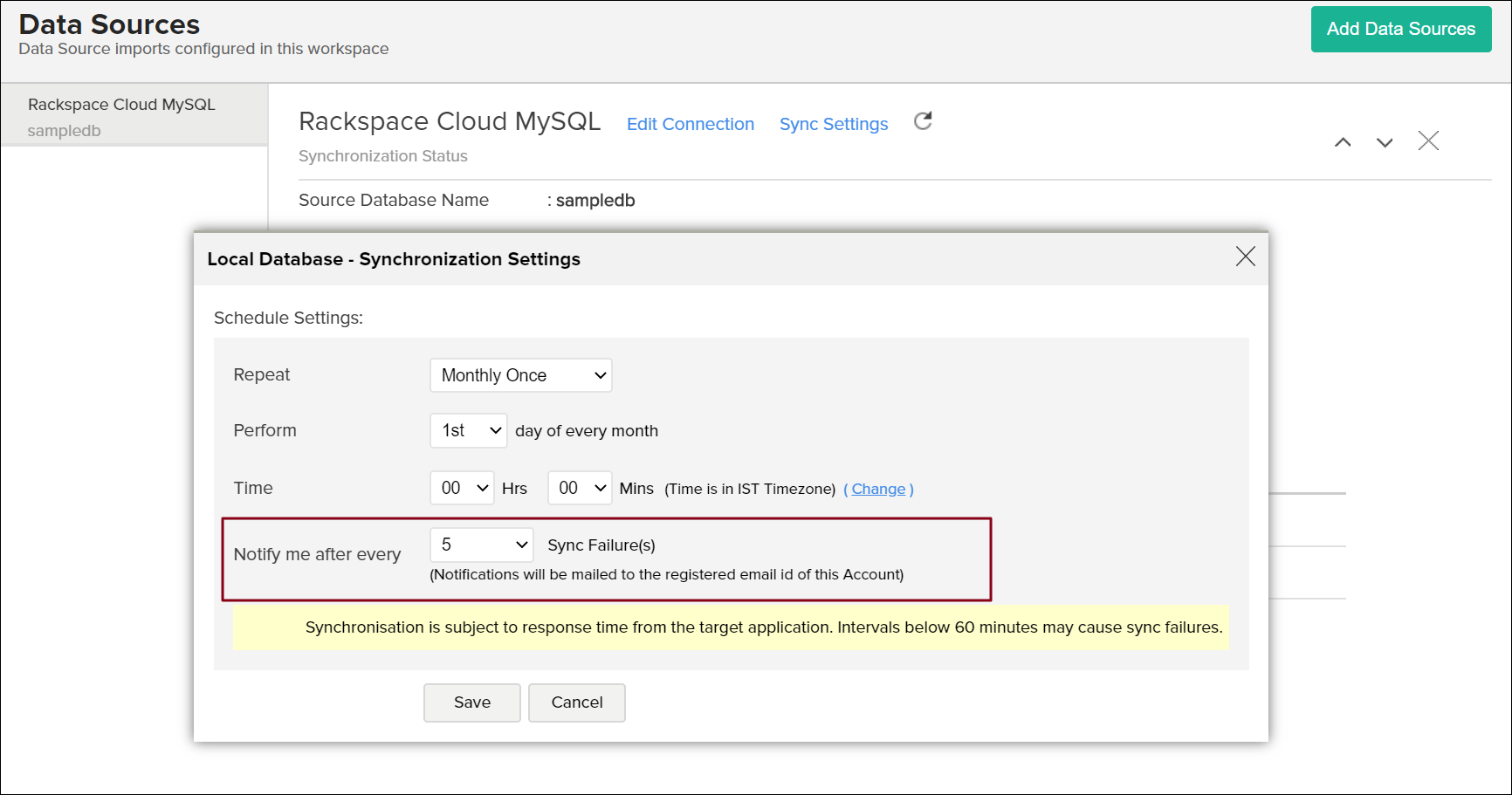• Specify the number of consecutive import failure after which you are to be notified using the Notify me after every 'N' Sync Failure (s) section.