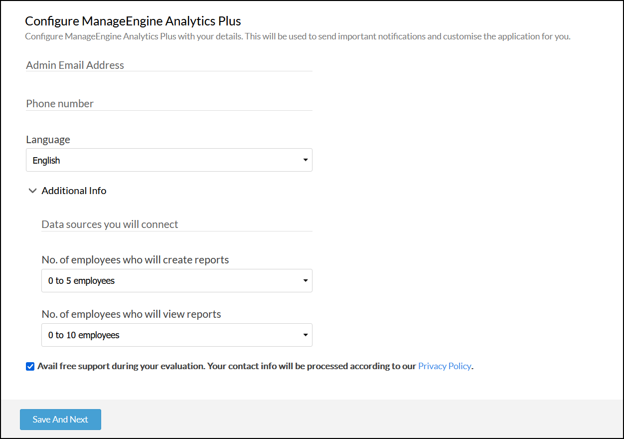 - No. of employees who will create reports: Choose the number of users who will ideally use Analytics Plus for report creation in your organization.
