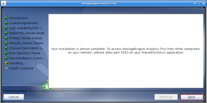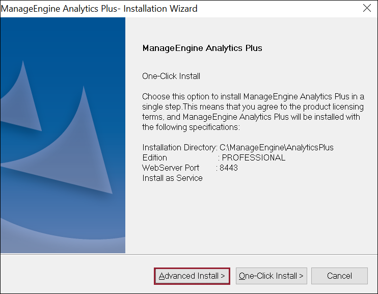 Follow the steps below to install Analytics Plus using the Advanced installation option: