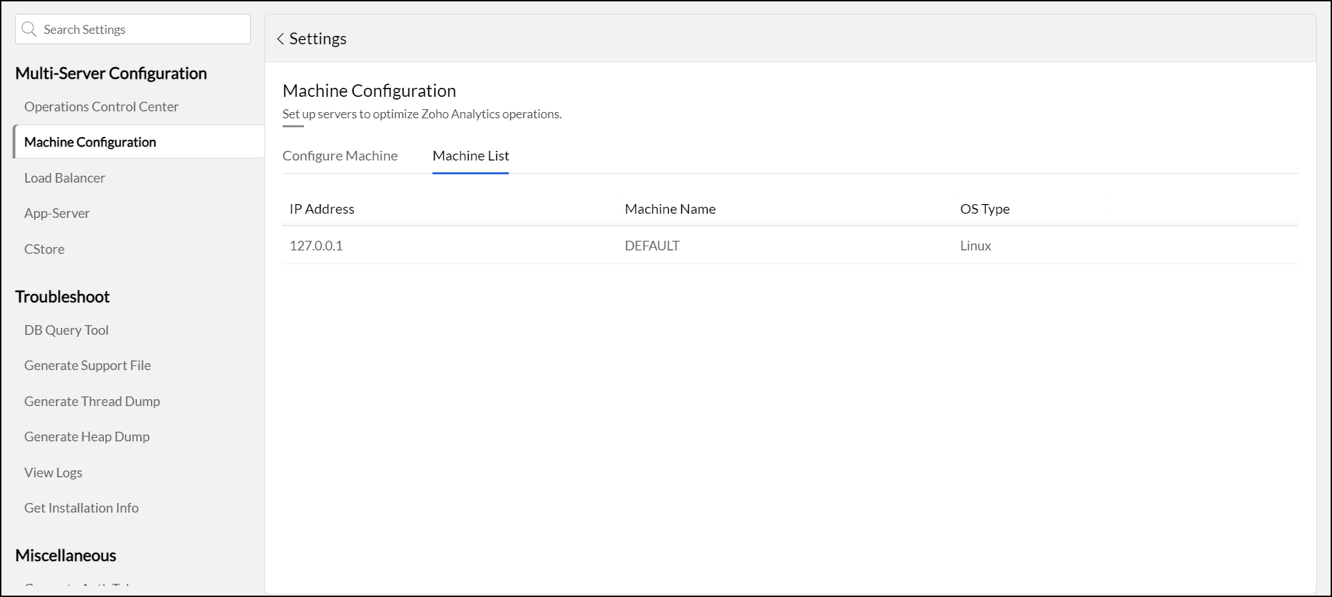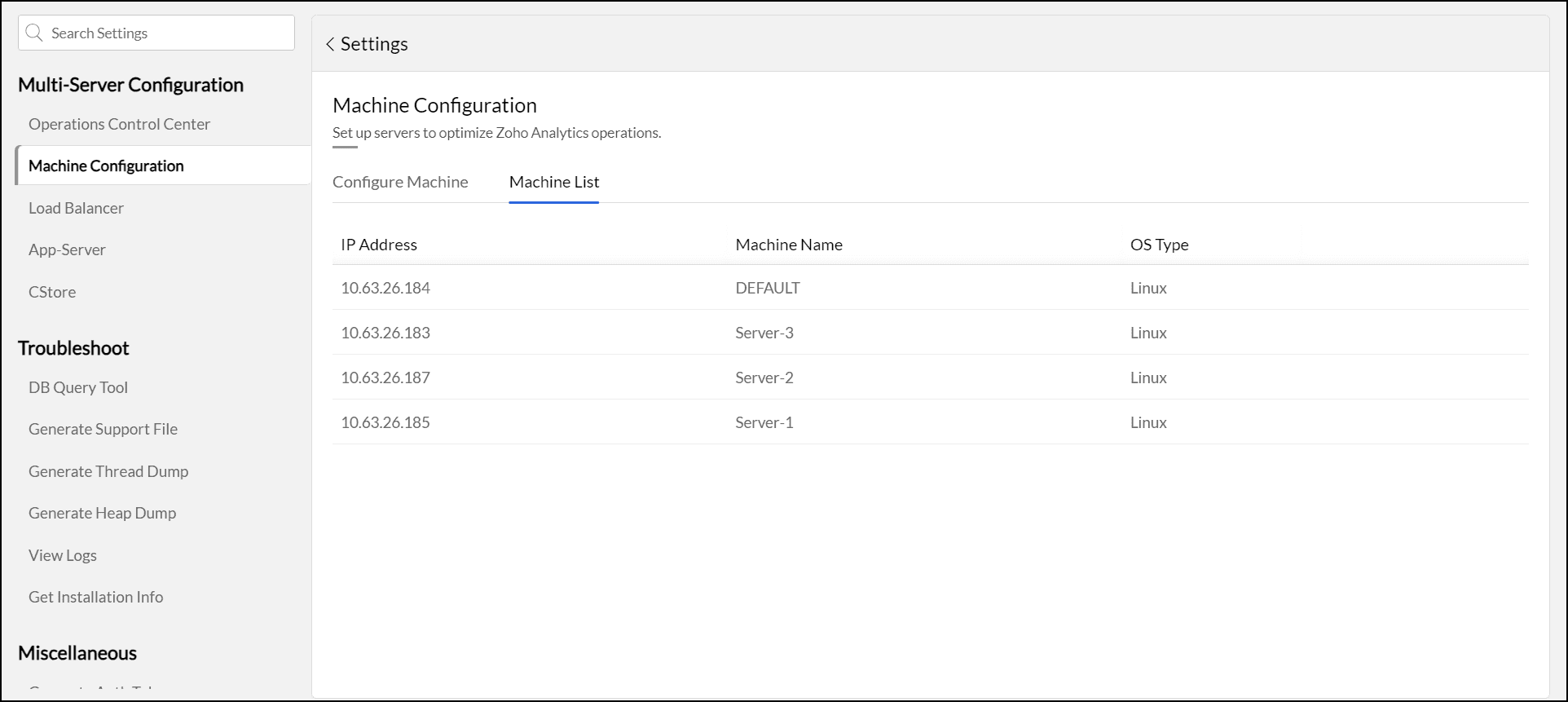Navigate to Settings > Multi-Server Configuration > Machine Configuration. Please note that the primary server details are added by default.