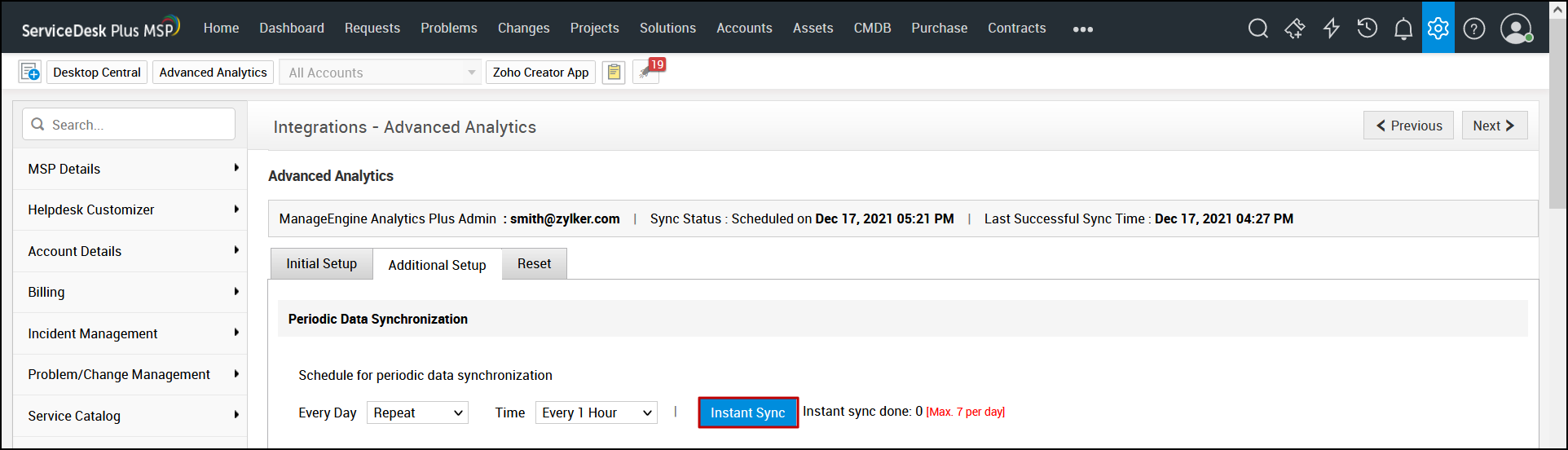 6. Can I synchronize my ServiceDesk Plus MSP data on-demand?