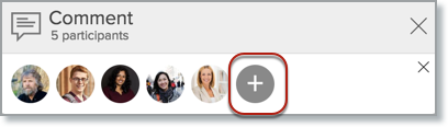 Yes. Any new shared user with Allow Commenting permission will be added to the commenting thread. You can also add participants from the commenting thread. Click the Add icon, the share dialog will open.