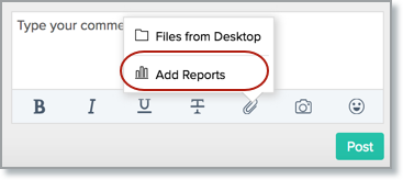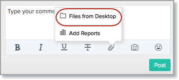 • Click the Attach icon and select the Files from Desktop option. Browse and choose the file you wish to share in the comment thread.
