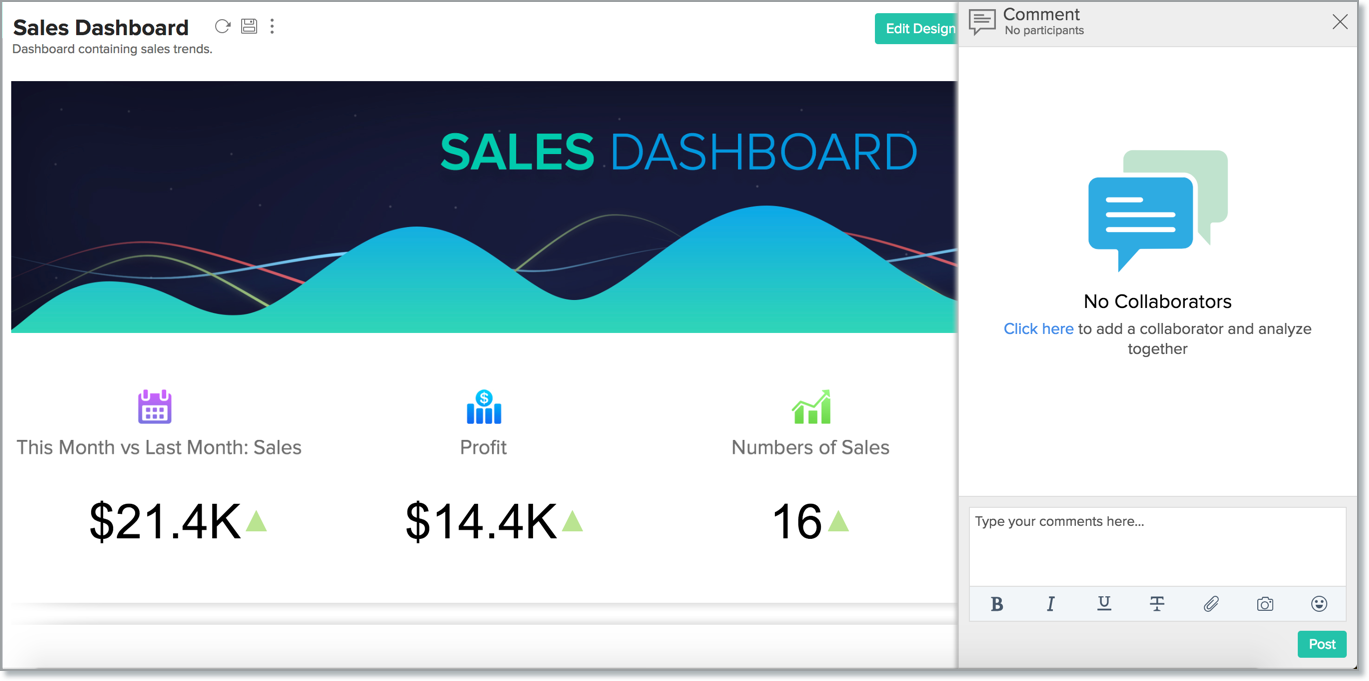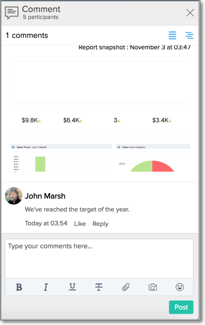 Commenting allows you to start a real-time conversation with the collaborators of the shared view, around your key business metrics, facilitating collaborative decision making.