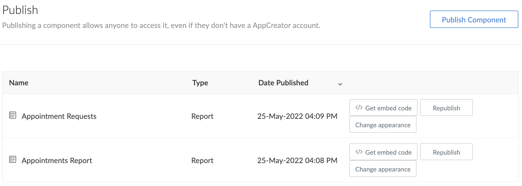 To publish a new component, click the Publish component button in the top-right corner of the page.