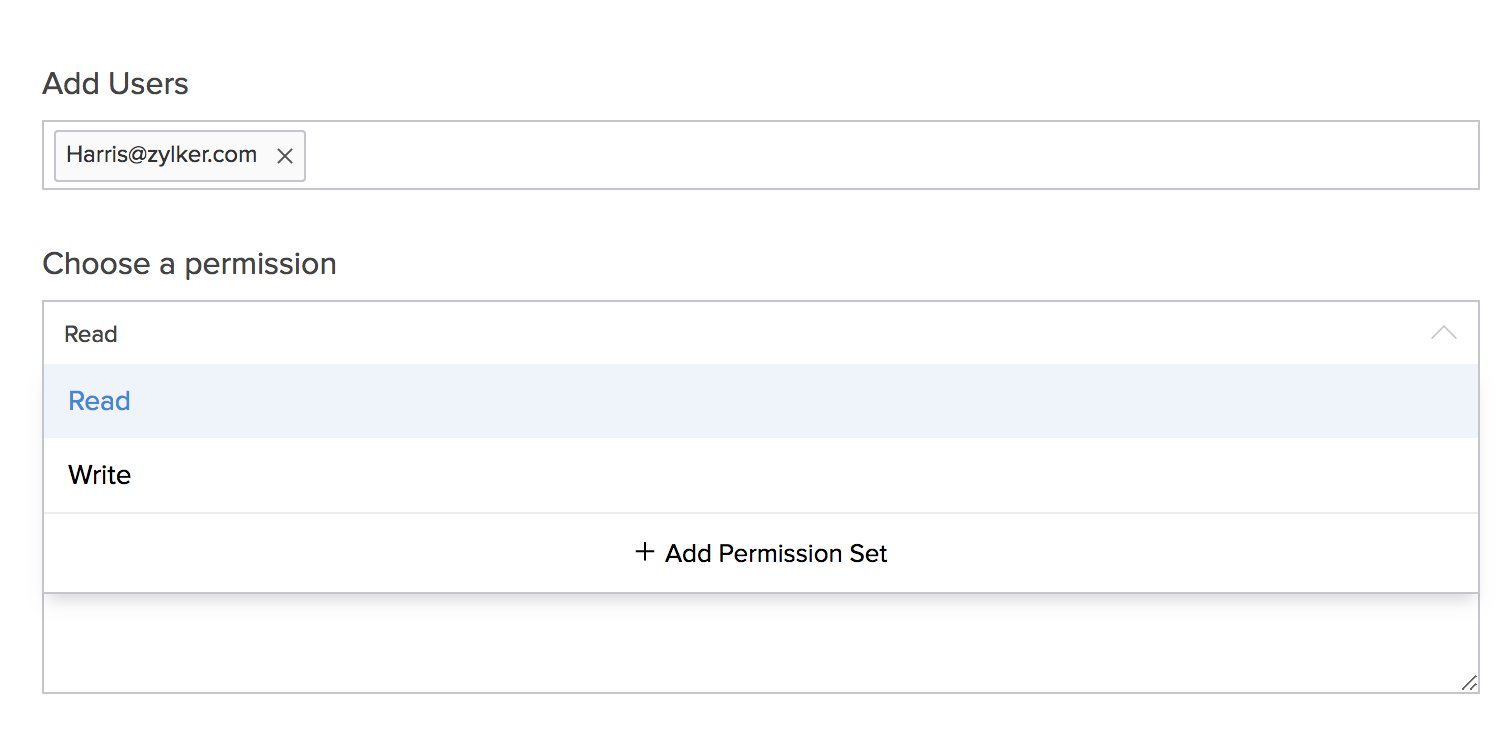 - Under the choose a permission section, the user can be assigned permissions based on the type of access you wish to grant. The permissions can be Read , Write , and Custom permission.
