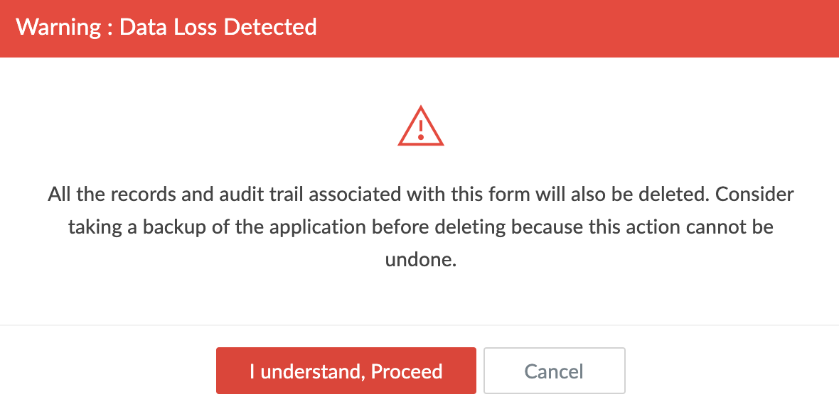 6. Click Proceed to Delete after removing the form's occurrences. You won't be able to delete this form until you have removed its references from the related forms.