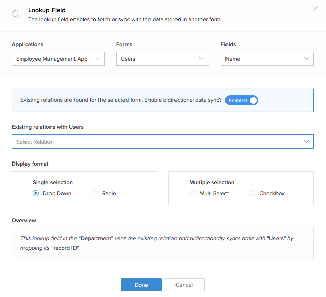2. Drag and drop the lookup field. The Lookup field window appears.