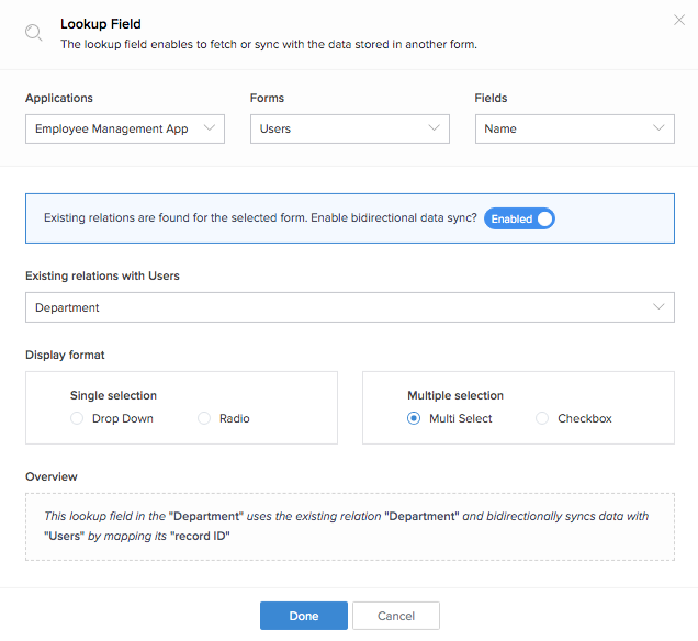 • User will be able to change Display Type: dropdown to radio button and multi select to checkbox