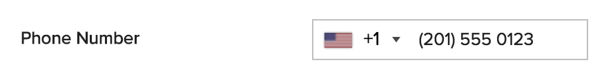 The phone field accepts formatted phone numbers. For example, the number +1 201-555-5555 may be entered as: