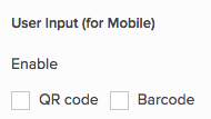 - Check the checkbox next to Barcode to enable the scanning of a barcode.