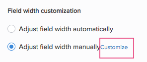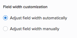 - If you select Adjust field width manually, you will need to set the field width in pixels: