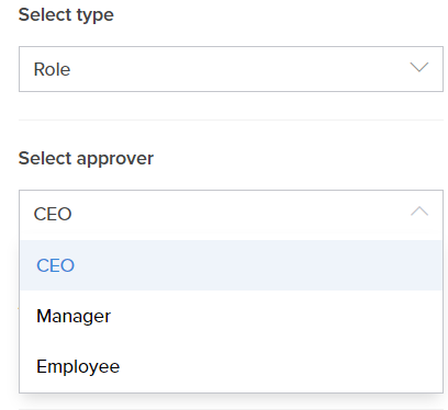 - Choose the Approver. The Select Approver field will list the options based on the selection made in the Select Type field.