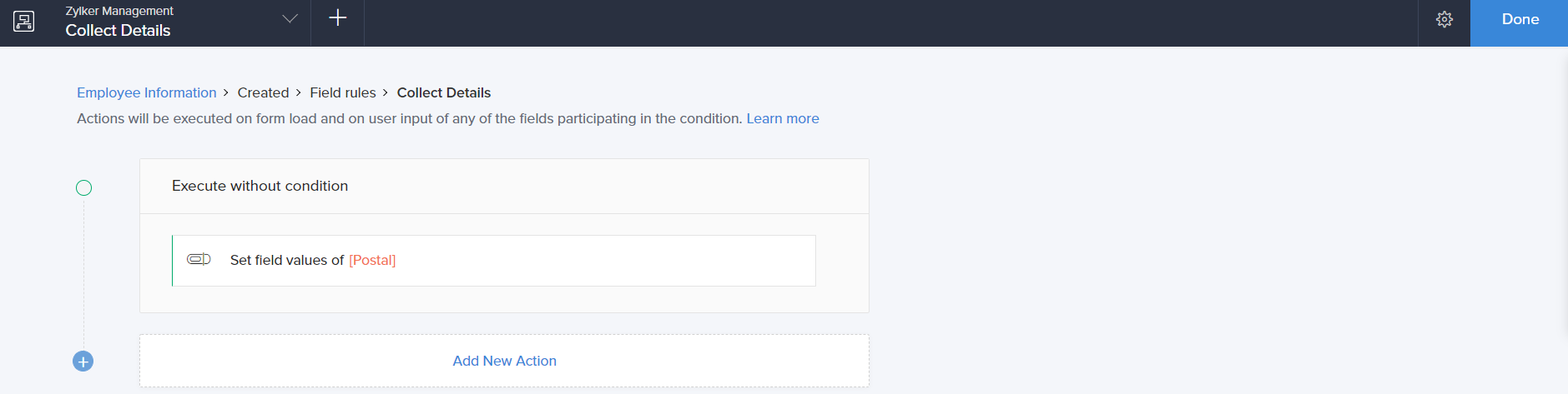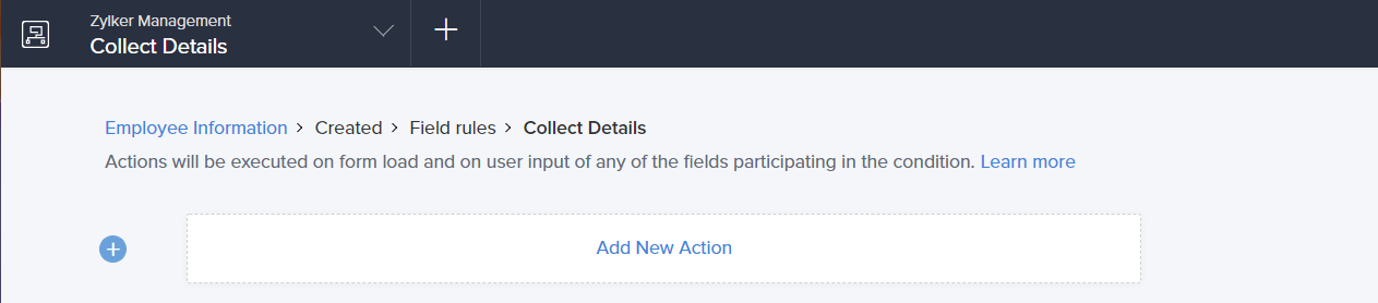 - ManageEngine AppCreator executes the action whenever there is an activity on the form. You can run the action for selected records by setting the criteria. Refer to the Set criteria page to learn more about setting criteria in a workflow.