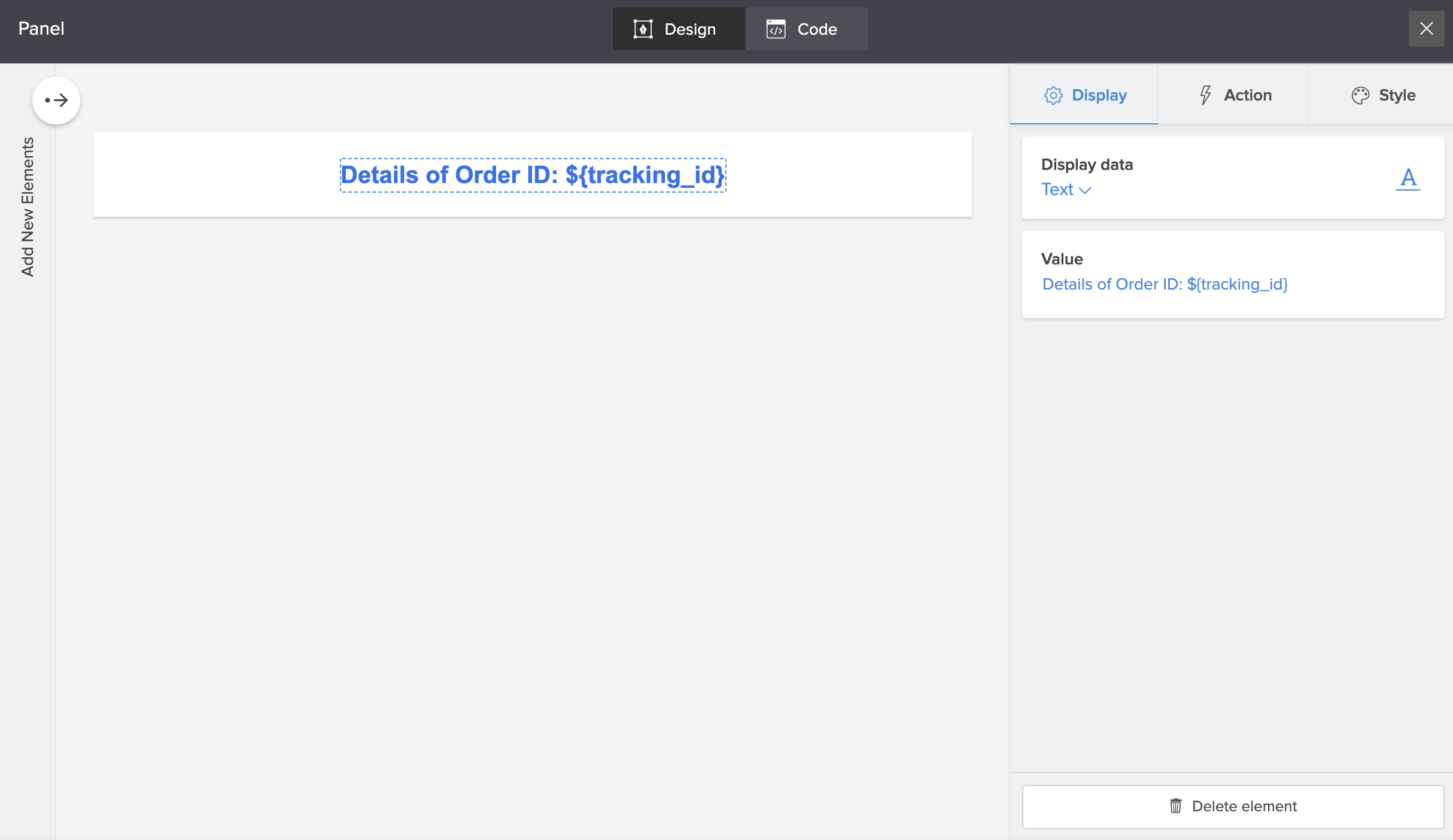Imagine you've created an application called Order Management. In this application, you have designed a parameterized page titled Track your Order that displays the order details in a HTML snippet upon entering the tracking ID (record ID) in the respective field (inside a stateless form). Upon form submission, this ID is set as the parameter value in the page URL and also in the panel that displays the text "Details of Order No: ${parameter_name}.
