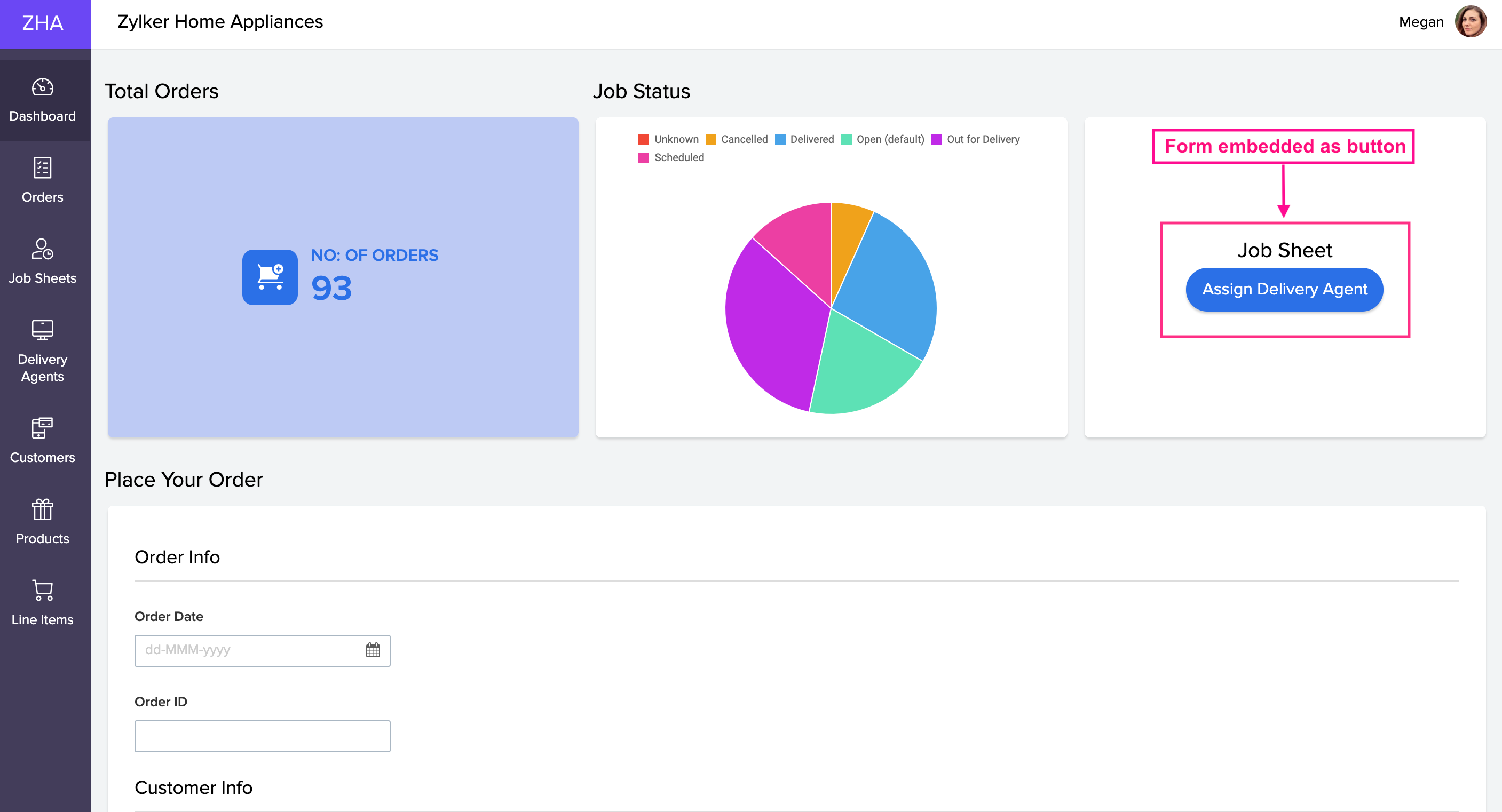 A form can also be embedded into your page in a button format. Clicking this button directs you to the form (from any of the applications in your account) in a custom target location like pop-up, same window or a new window. You can customize various aspects of the button. Learn how