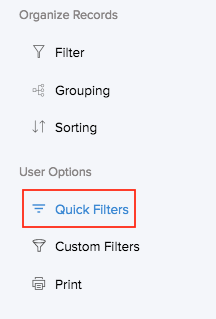 Quick filters can be included in the report builder, which in turn will be reflected in the report. The users can apply the required filter to the complete data in the report, then narrow down to the records that they wish to view.