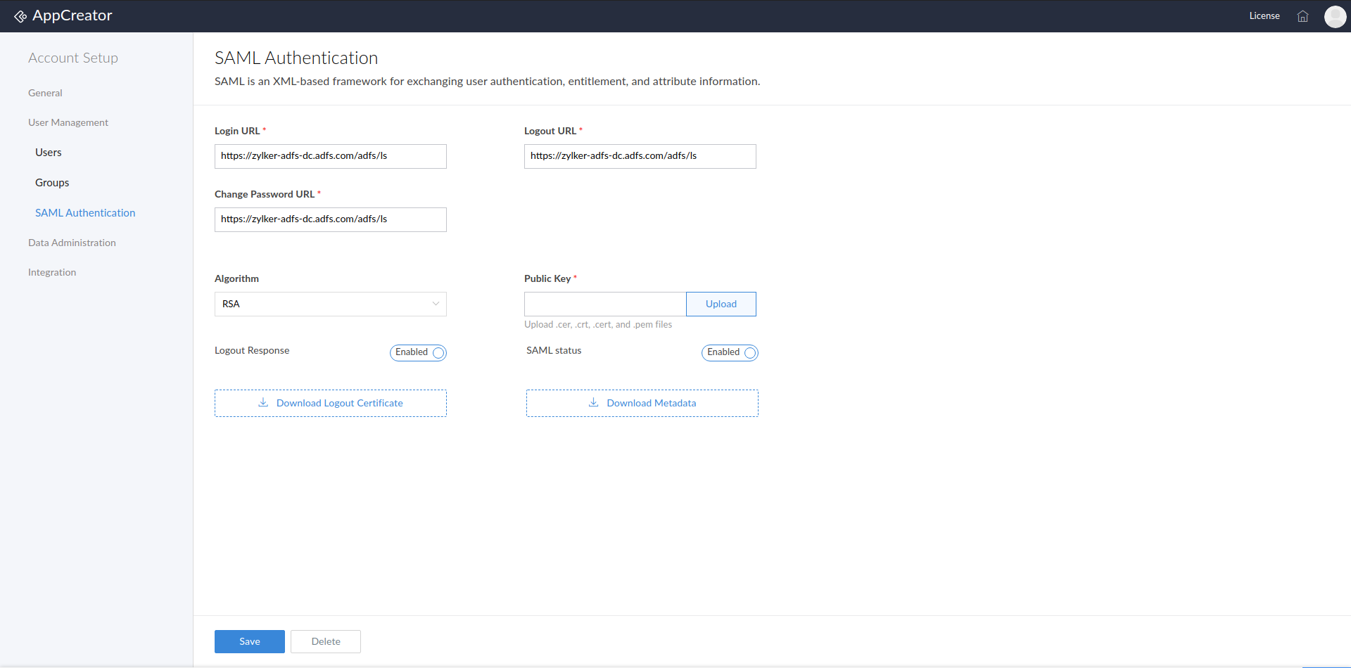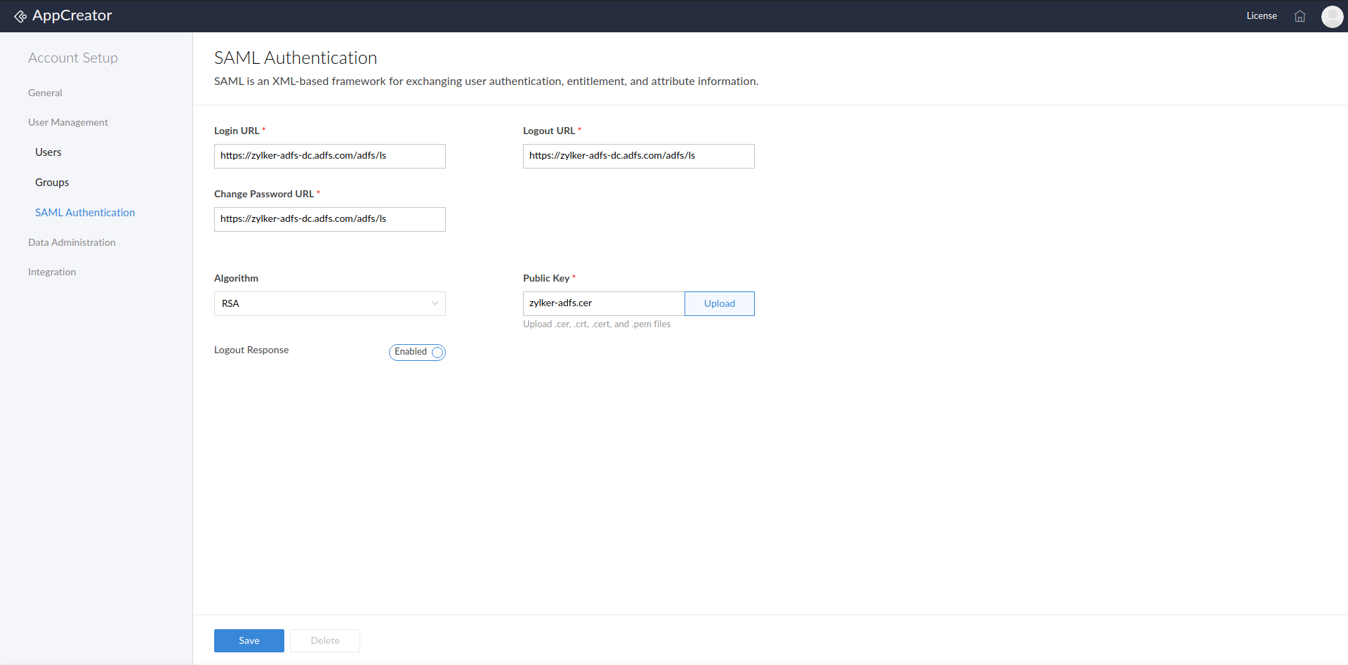 SAML Authentication for AppCreator