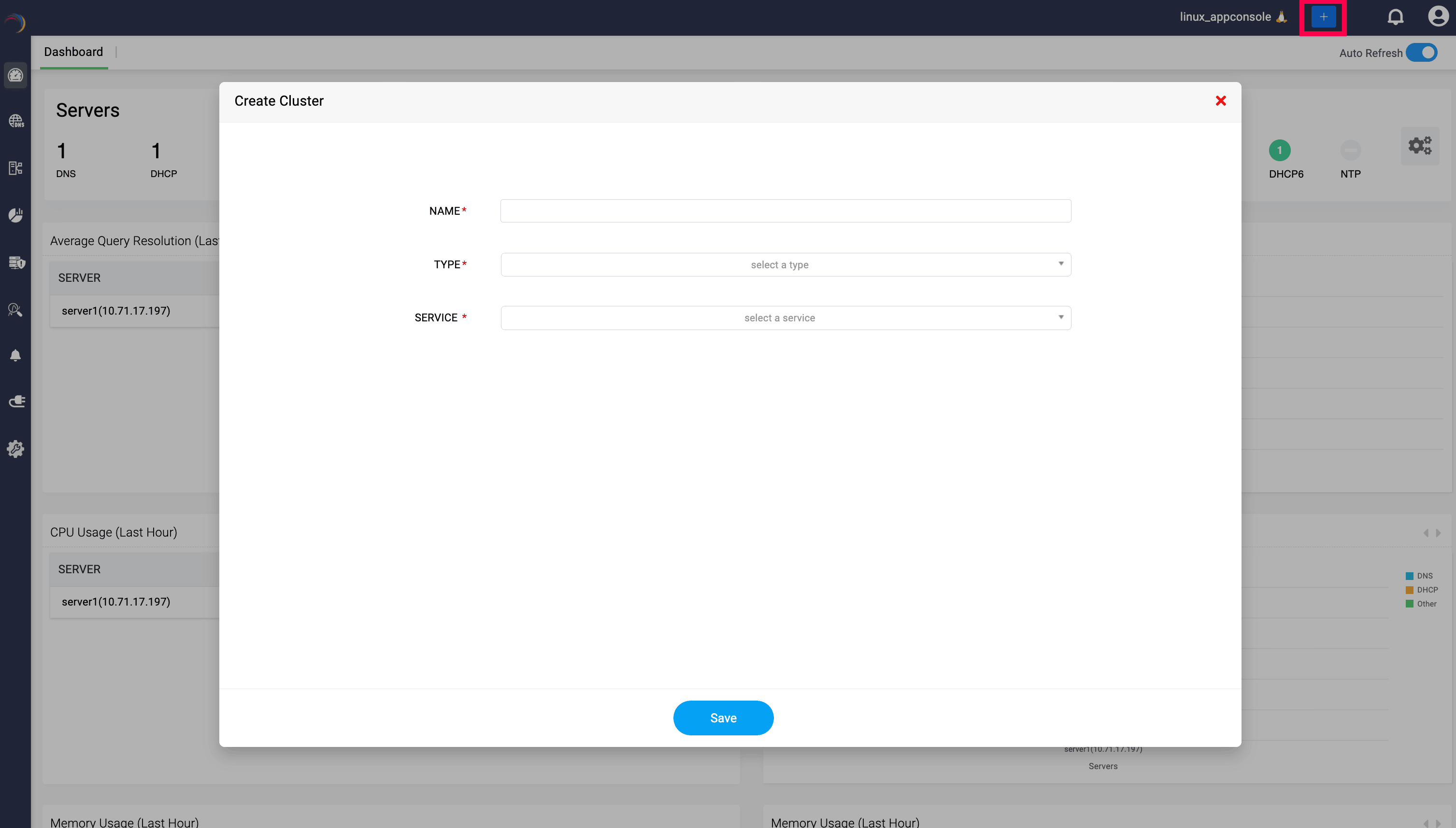 Once the cluster is created you will be directed to the servers page where you'll be prompted to add your DNS and DHCP servers.