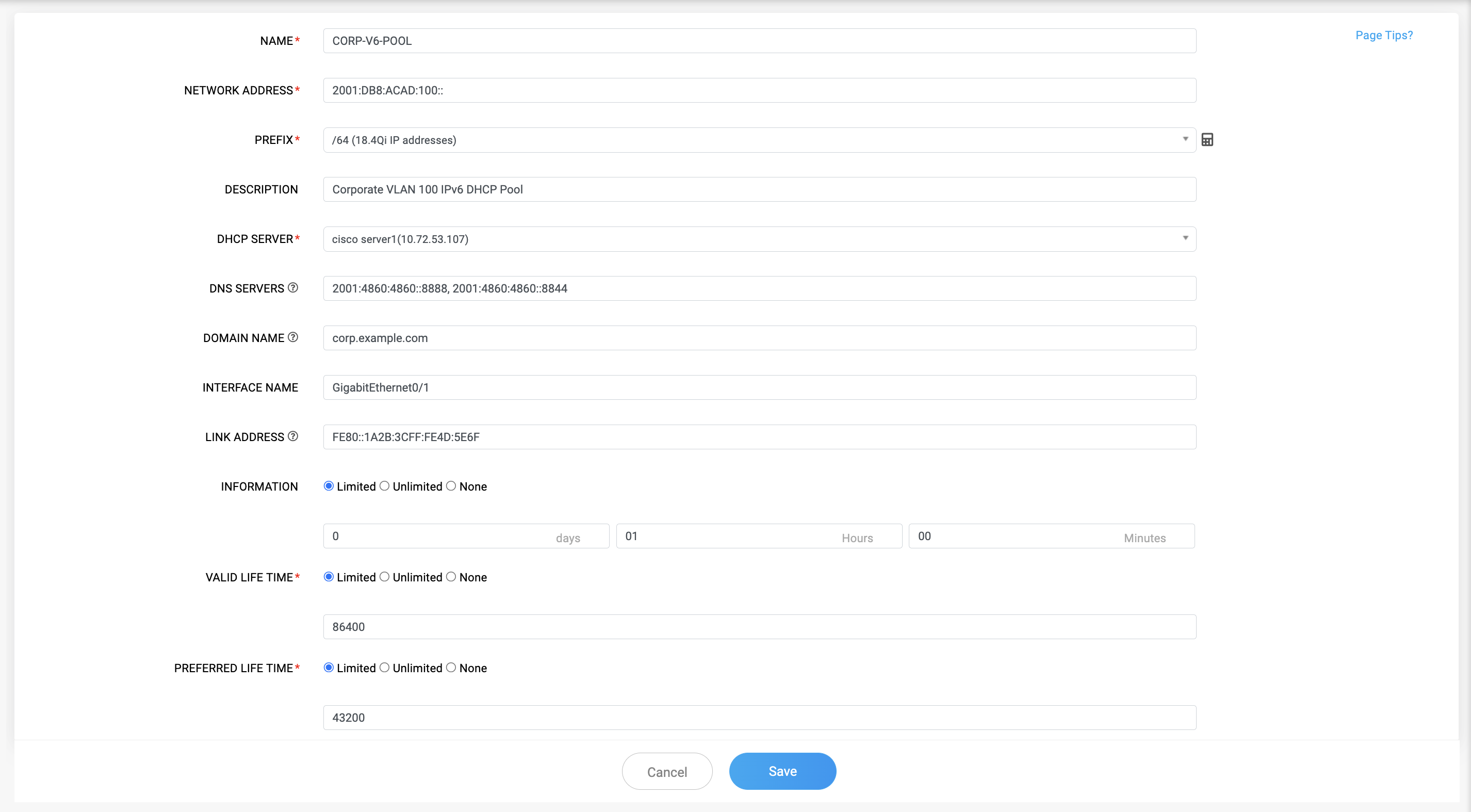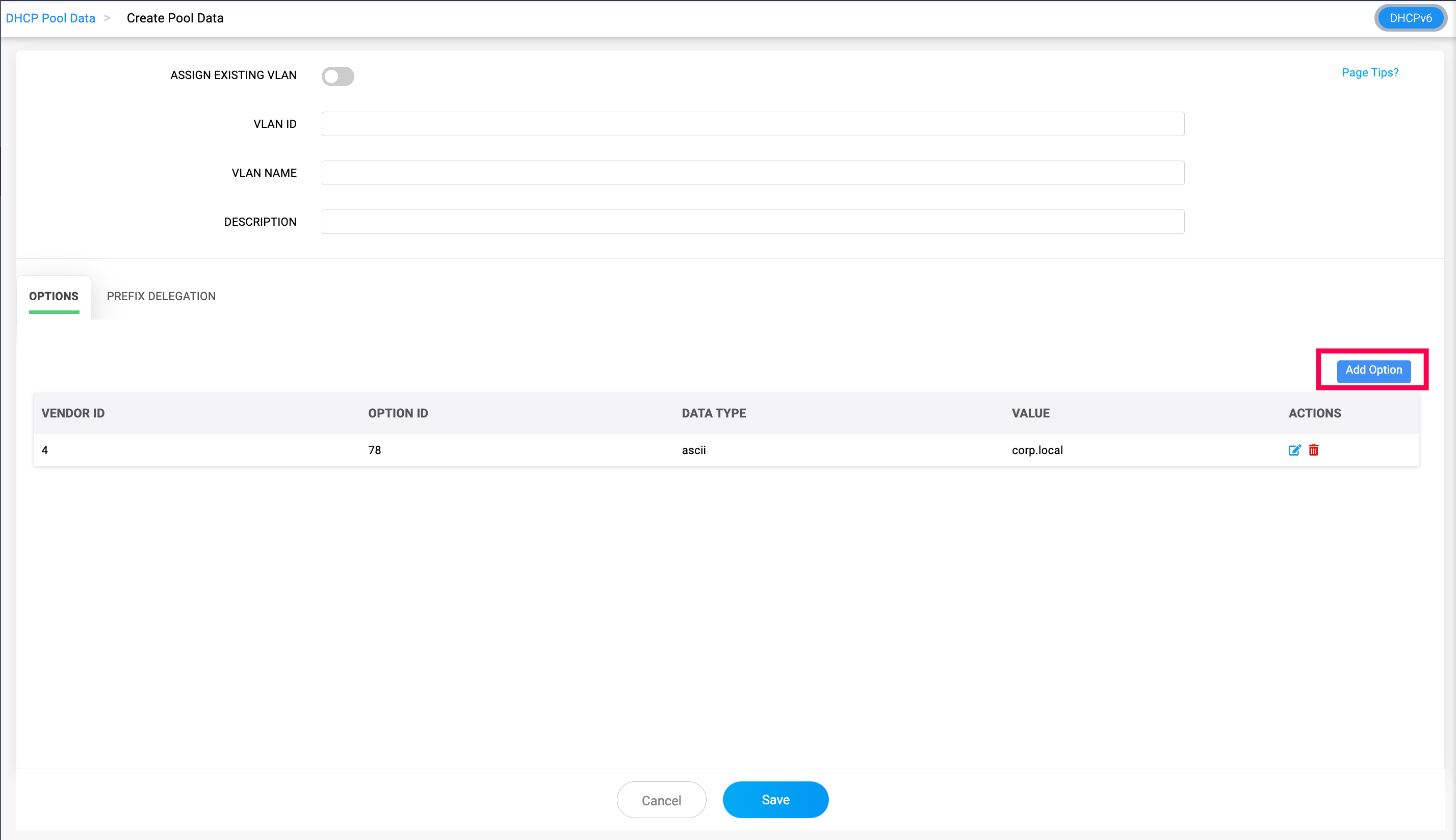Note: Network admins can either provide the name of the DHCP pool or the network address along with its prefix range in the prefix source field.