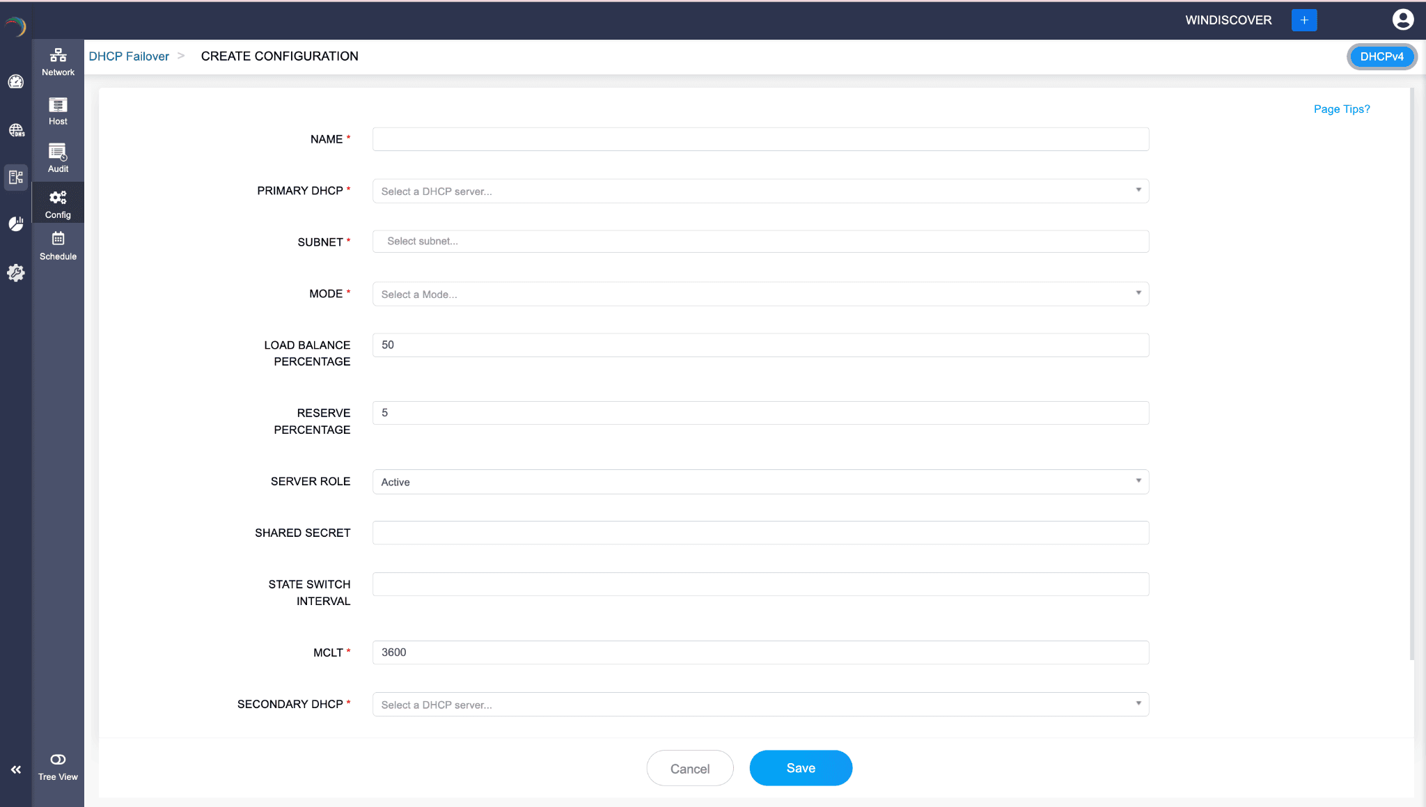 - Name: Enter a unique name to easily identify the DHCP failover configuration.