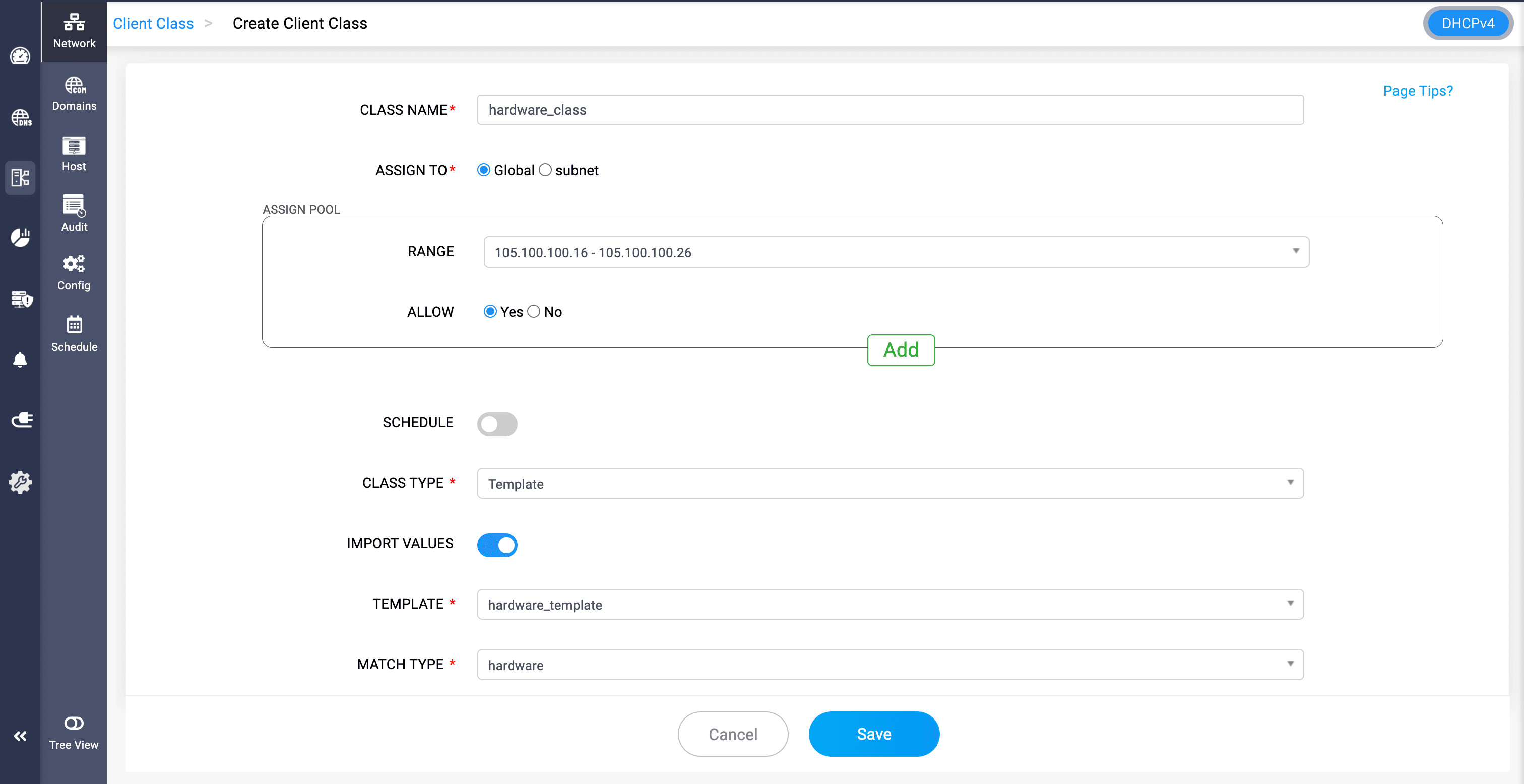 This template can be imported into a Client class by clicking on the Class type, selecting Template, toggling Import Values, and selecting the template, where the admin can configure the custom options need to be implemented within the client class.
