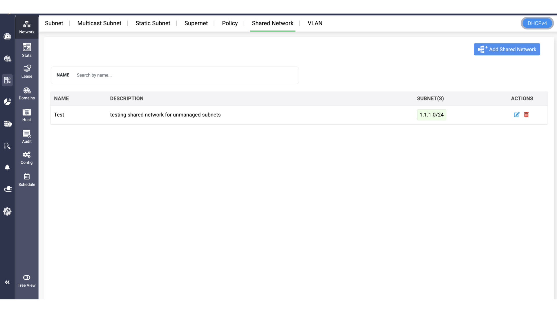 When an unmanaged DHCP subnets are associated with a specific shared network, the subnets will be displayed within the shared network page for reference.