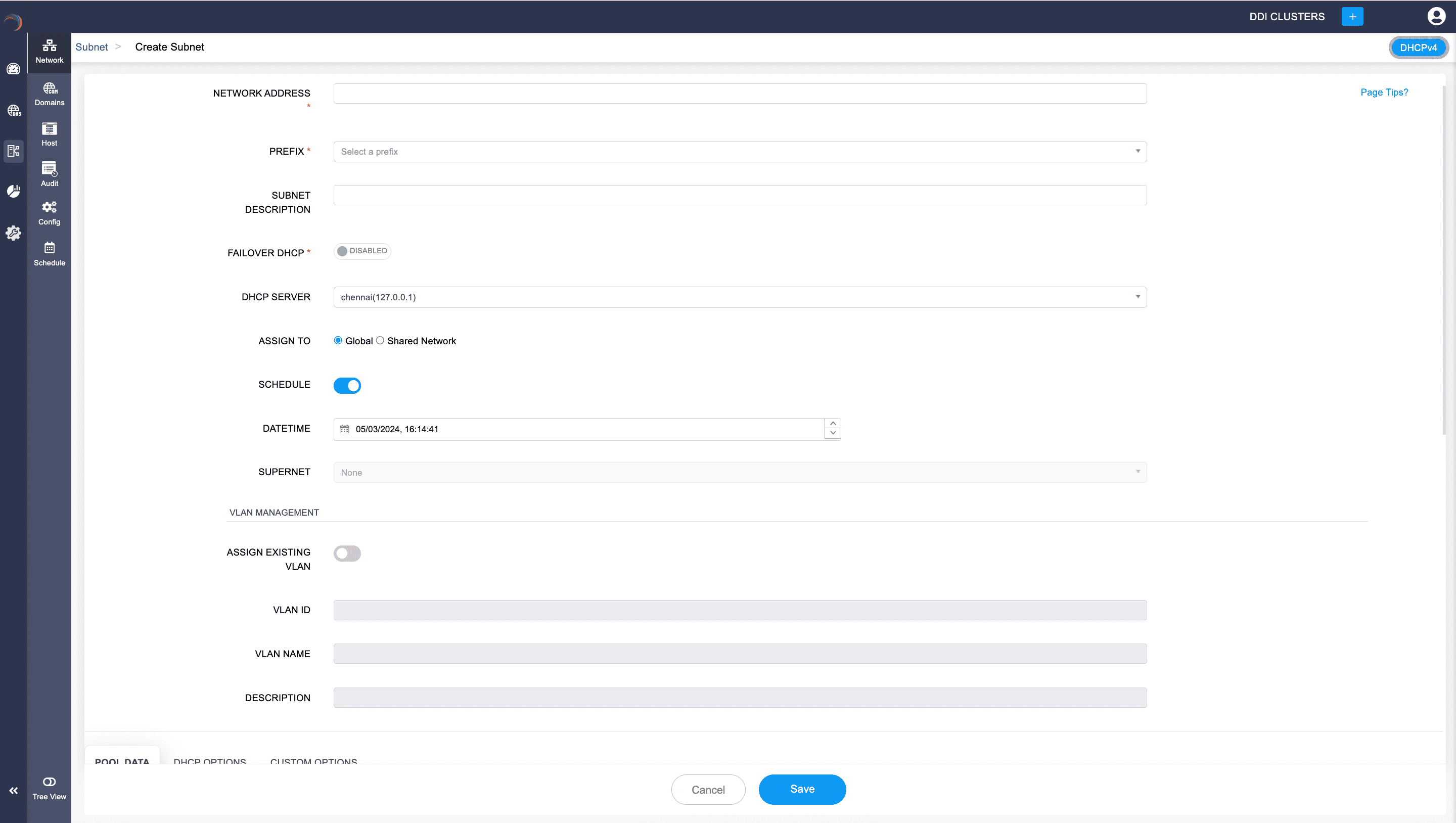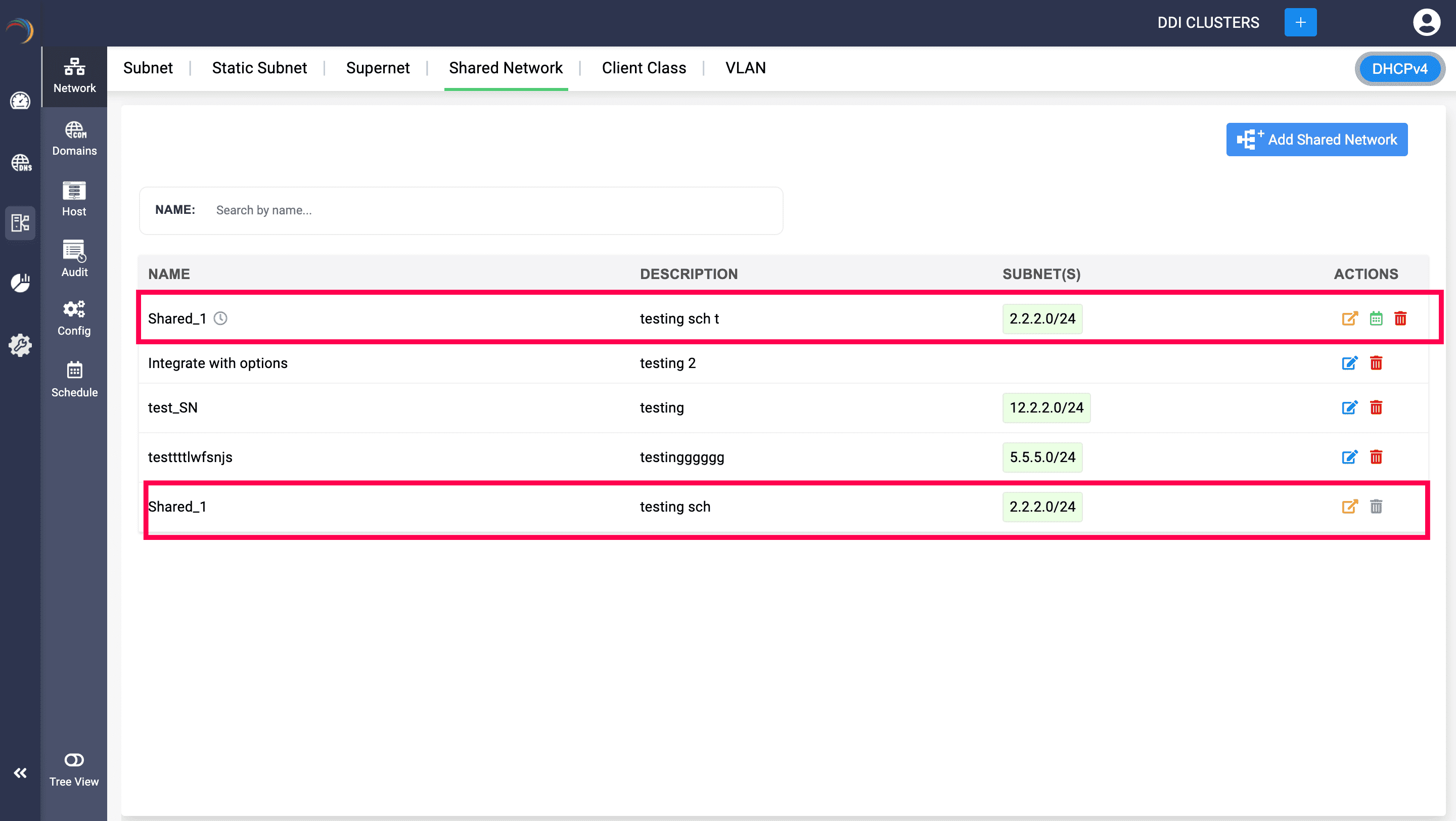 In the DHCP module, only the following DHCP configurations can be scheduled within DDI Central, Subnets, Shared Networks, Hosts, Host Groups and Client Classes.