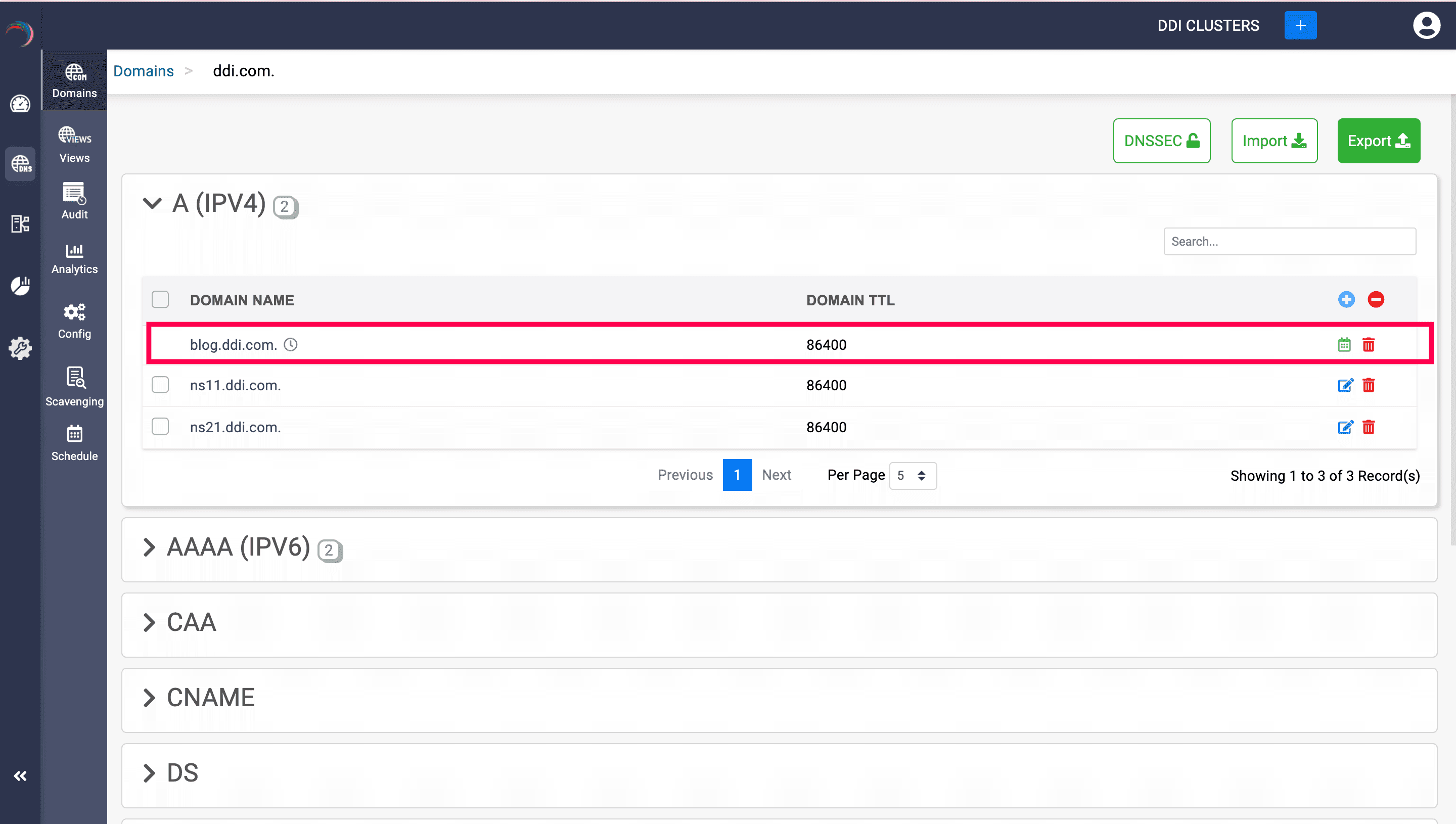 In the DNS module, DDI Central enables you to schedule the configurations for resource records of the domains hosted on your on-premises DNS servers managed using DDI Central.
